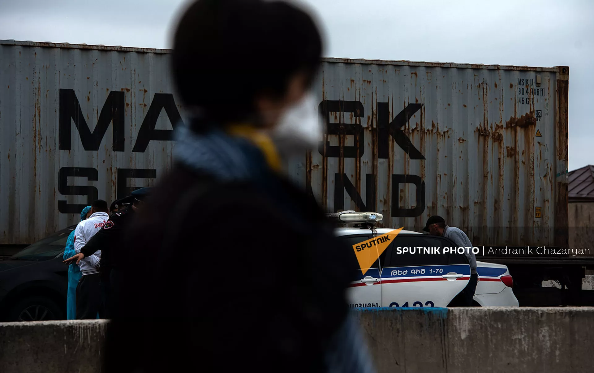 Sputnik Արմենիայի լուսանկարչին հաջողվել է անմահացնել մի կադր, որում դիմակով լրագրողն աշխատում է Mask (անգ․ «դիմակ») գրությամբ բեռնատարի ֆոնին։