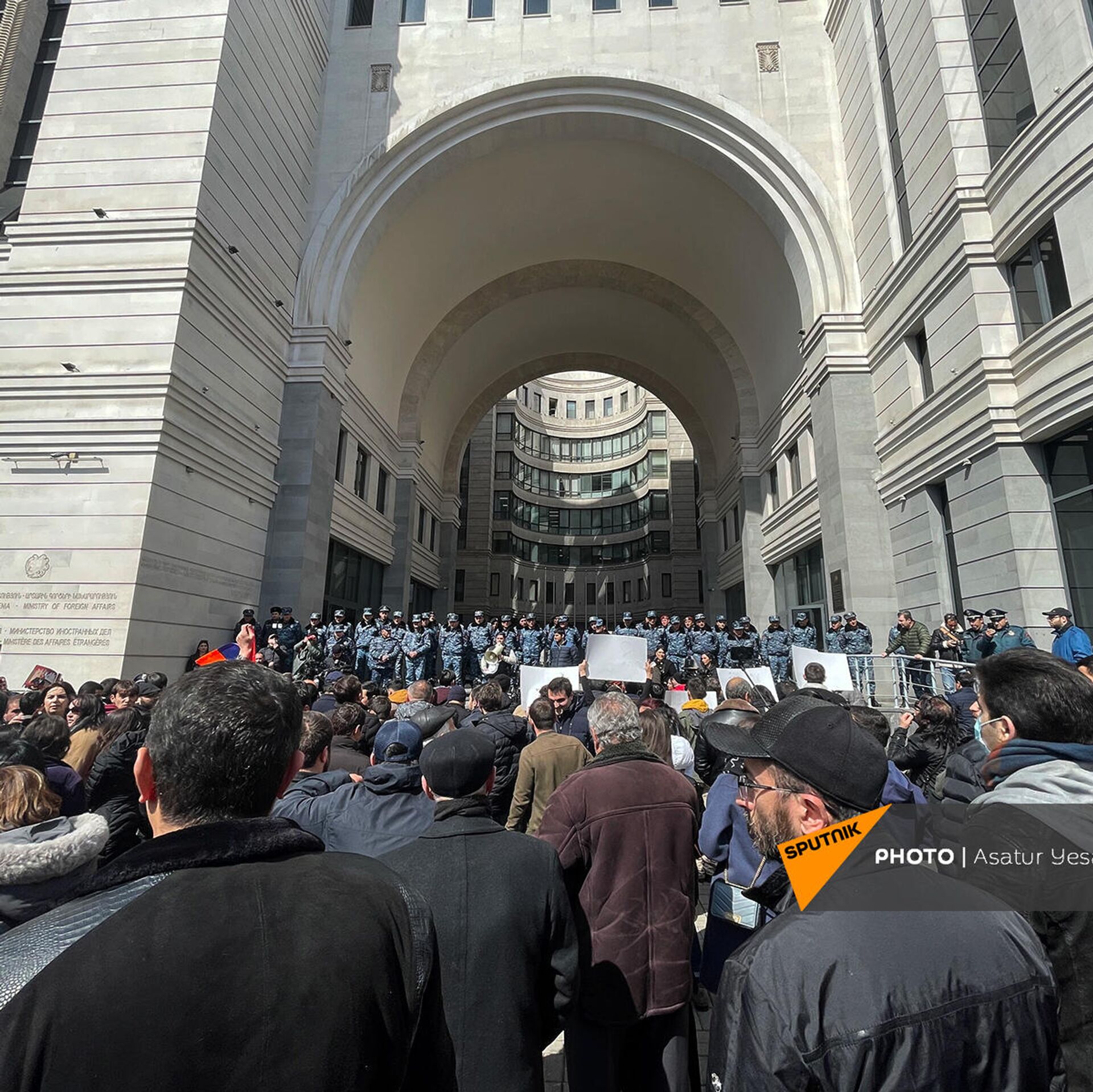 ԱԳՆ–ի շենքի մոտ հավաքվածները պնդում են, որ Արարատ Միրզոյանը հայ ժողովրդի անունից խոսելու իրավունք չունի։ 17.03.2022, Sputnik Արմենիա