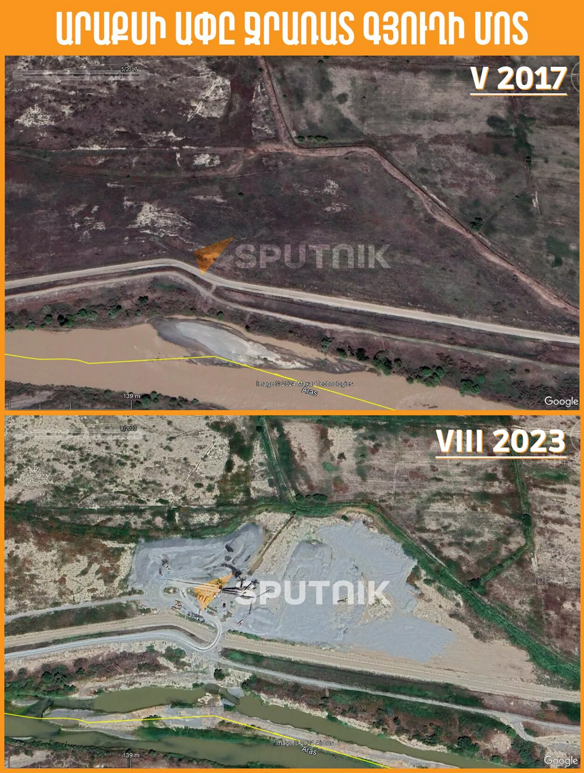 Արաքսի ափից ավազ արդյունահանելու աղետալի հետևանքները. արբանյակային լուսանկարներ