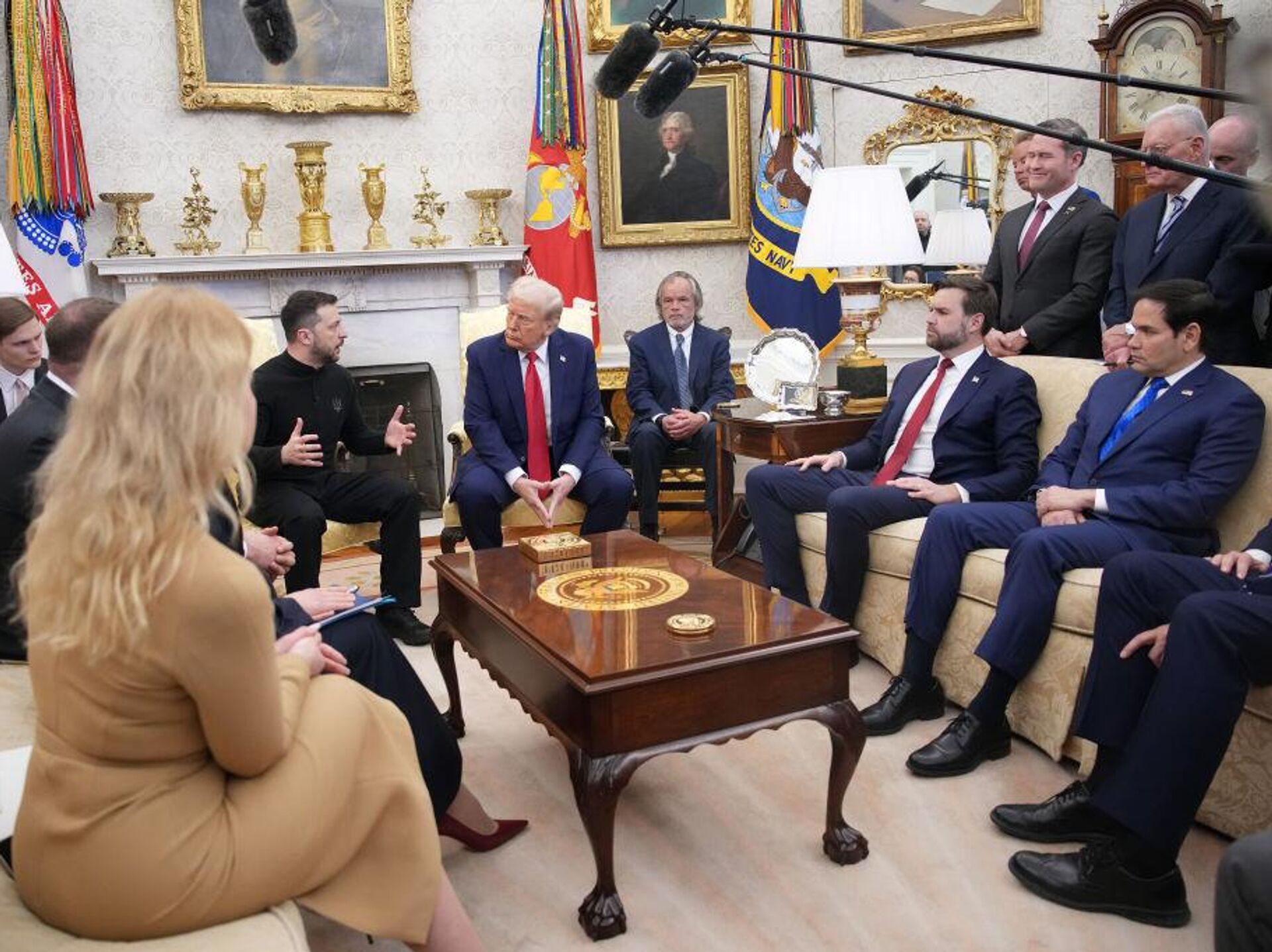 Լրագրողների ներկայությամբ անցկացվող զրույցի ընթացքում Վենսը մասնավորապես մեղադրել է Զելենսկուն, որ նա նախընտրական քարոզարշավի ընթացքում Փենսիլվանիայում քարոզչություն է իրականացրել Թրամփի հակառակորդի համար: