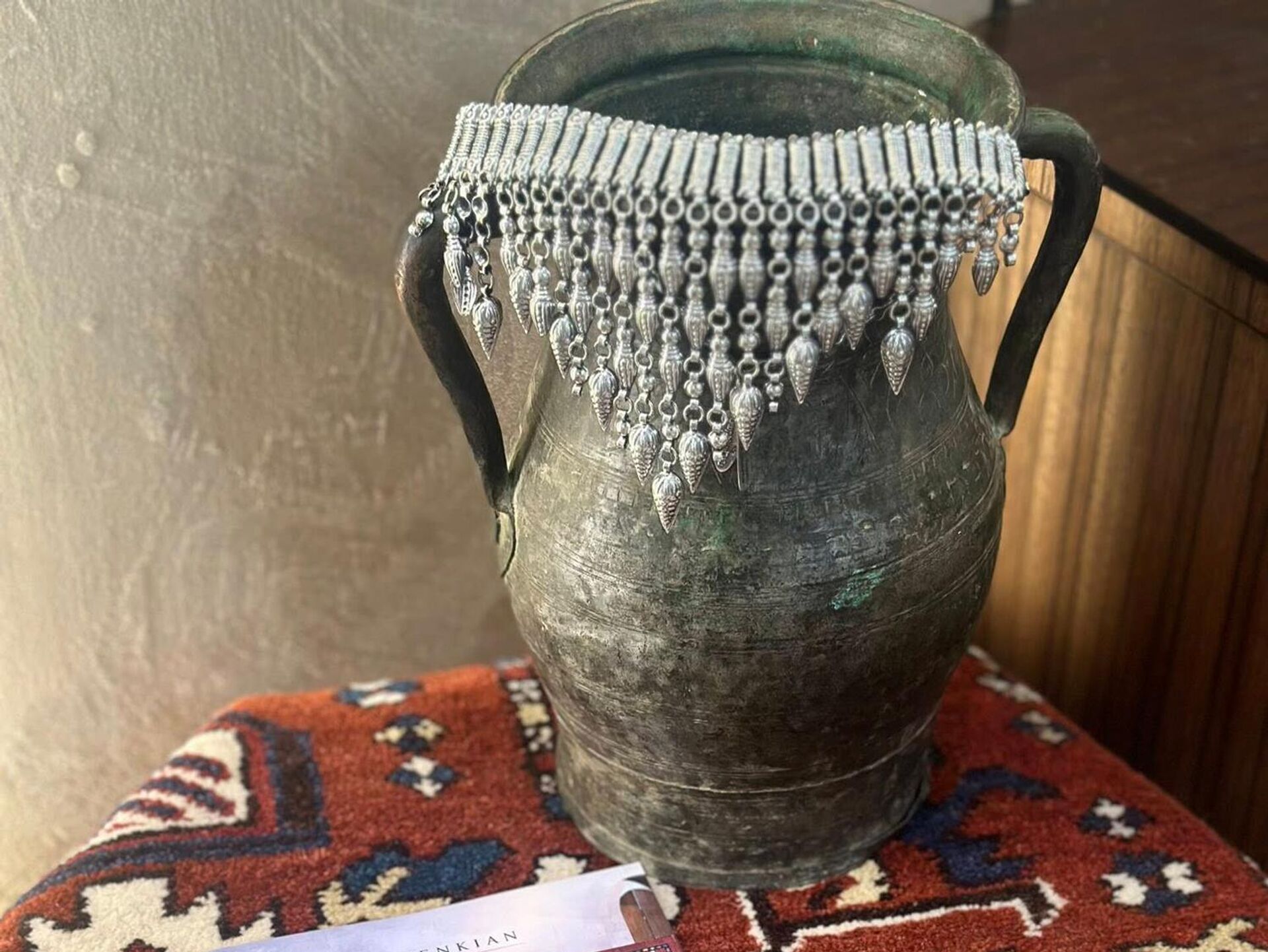 Վարպետը երգչուհու համար վզնոց և օղեր է պատրաստել, զարդերը գեղեցիկ մատուցելու համար դրել են կժի վրա։ 06.08.2025, Sputnik Արմենիա