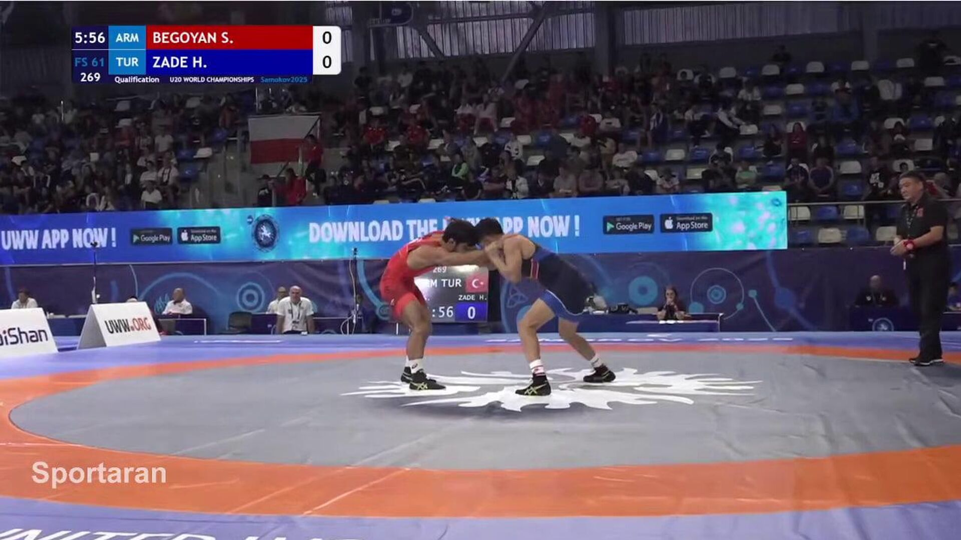 Մինչև 20 տարեկանների ազատ ոճի ըմբշամարտի աշխարհի առաջնությունում Հայաստանի ներկայացուցիչ Սարգիս Բեգոյանը (61 կգ) 10:0 հաշվով հաղթեց Թուրքիայի ներկայացուցիչ Հաջի Զադեին և անցավ 1/8 եզրափակիչ։Առաջնությունն ընթանում է Բուլղարիայի Սամոկով քաղաքում։ Նշենք, որ Հայաստանի հավաքականում 9 ըմբիշ է ընդգրկված։ Օգոստոսի 18-ին կայացած մենամարտերից հետո պարզ դարձավ, որ Արման Մուսիկյանը (65 կգ) և Նարեկ Նիկողոսյանը (79 կգ) սփոփիչ գոտեմարտեր կանցկացնեն։Արման Հարությունյանը (57 կգ) և Նարեկ Իկիլիկյանը (92 կգ) դուրս մնացին մեդալների համար պայքարից։