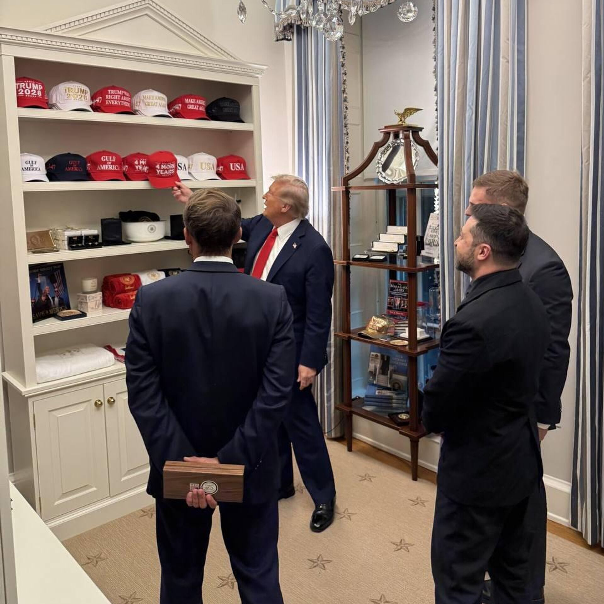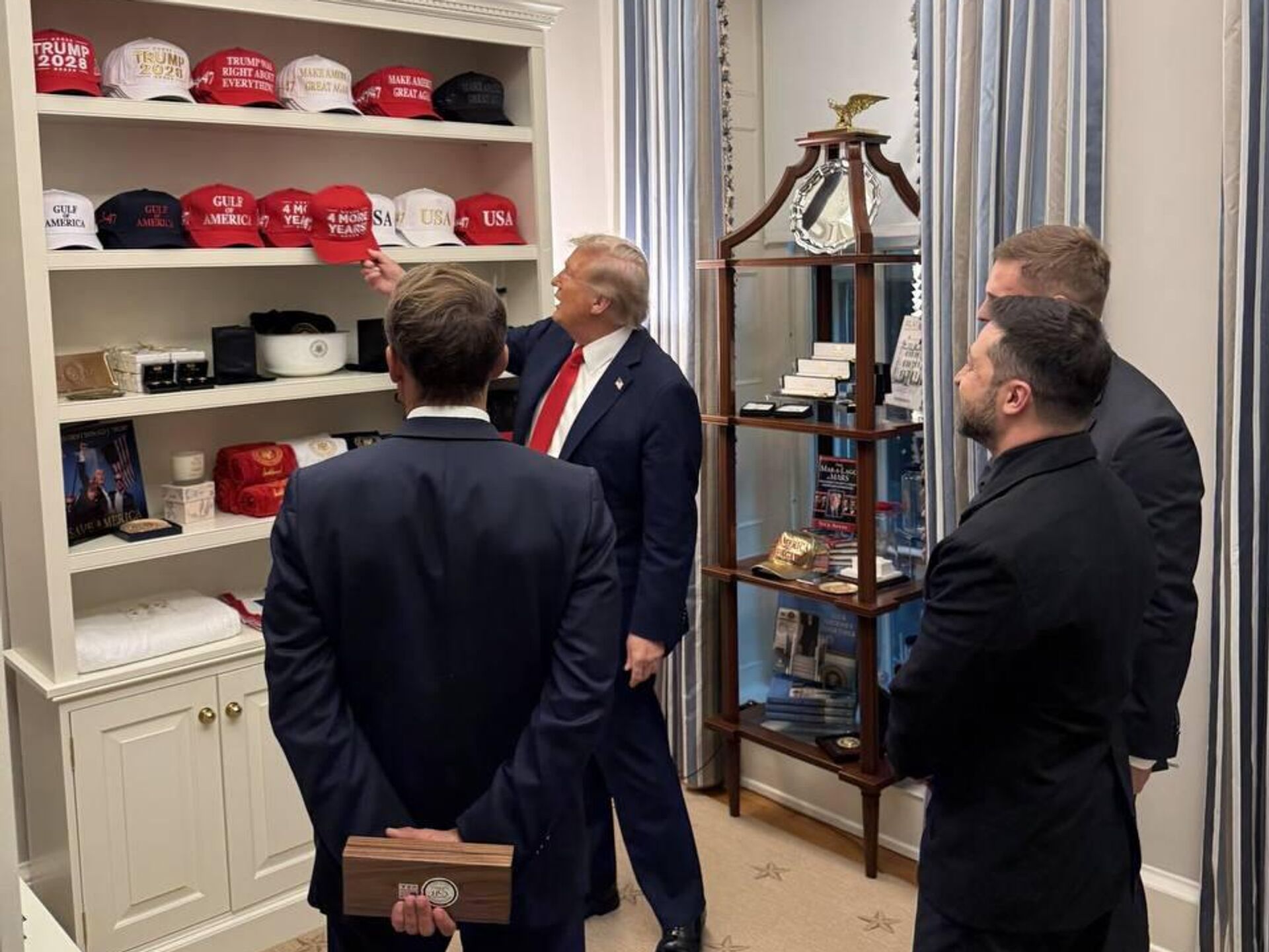 «Զելենսկին ԱՄՆ նախագահին նվիրել է գոլֆի մական, որը նրան փոխանցել է Ուկրաինայի զինված ուժերի կրտսեր սերժանտը… Դոնալդ Թրամփն ընդունել է նվերը և տեսանյութ ձայնագրել` ուկրաինացի զինծառայողին շնորհակալություն հայտնելով մականի համար։ Նա Սպիտակ տան խորհրդանշական բանալի է նվիրել Զելենսկուն», – ասվում է Զելենսկու գրասենյակի կայքում հրապարակված հաղորդագրության մեջ։