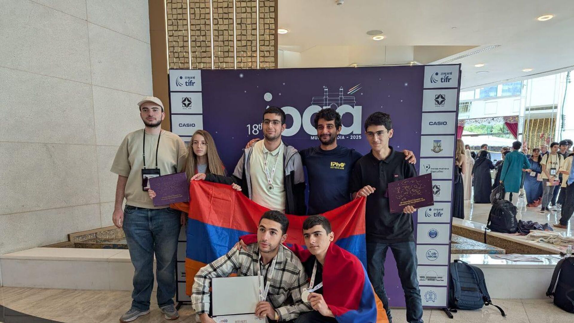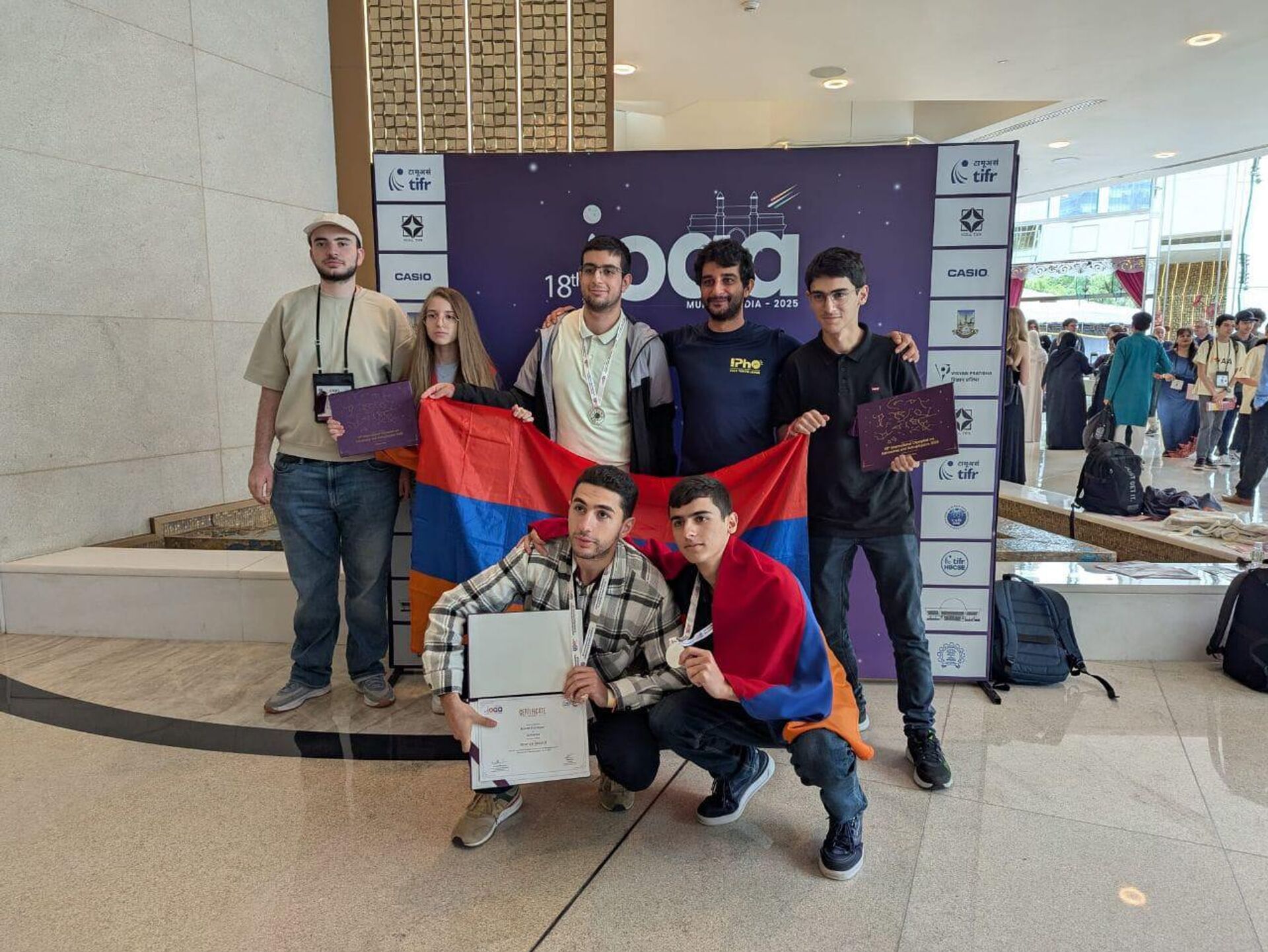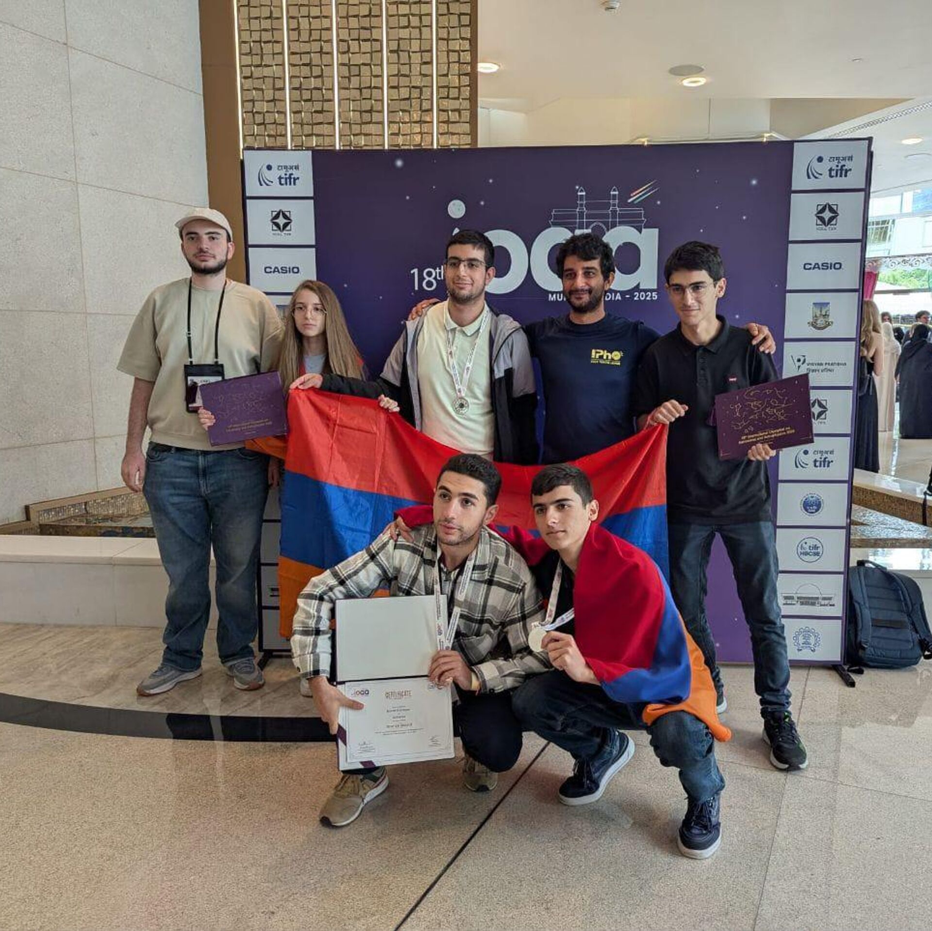 ԵՐԵՎԱՆ, 22 օգոստոսի - Sputnik. Հայաստանի ներկայացուցիչները 2 արծաթե և 1 բրոնզե մեդալ են նվաճել օգոստոսի 11-21-ը Հնդկաստանի Մումբայ քաղաքում անցկացված Աստղագիտության և աստղաֆիզիկայի միջազգային 18-րդ օլիմպիադայում:Տեղեկությունը հայտնում են ԿԳՄՍ նախարարությունից։Օլիմպիադան անցկացվել է 4՝ տեսական, դիտողական, տվյալների վերլուծության և պլանետարիումի փուլերով։Հայաստանի թիմը ղեկավարել են Հրանտ Թոփչյանը (Երևանի ֆիզիկայի ինստիտուտ) և Արտաշես Մկրտչյանը (Ա. Շահինյանի անվան ֆիզմաթ մասնագիտացված դպրոց)։Հիշեցնենք, որ 2024 թվականի Աստղագիտության և աստղաֆիզիկայի միջազգային 17-րդ օլիմպիադայում, որն անցկացվել էր Բրազիլիայի Ռիո դե Ժանյերո քաղաքում, Հայաստանի թիմն արժանացել էր 3 բրոնզե մեդալի։