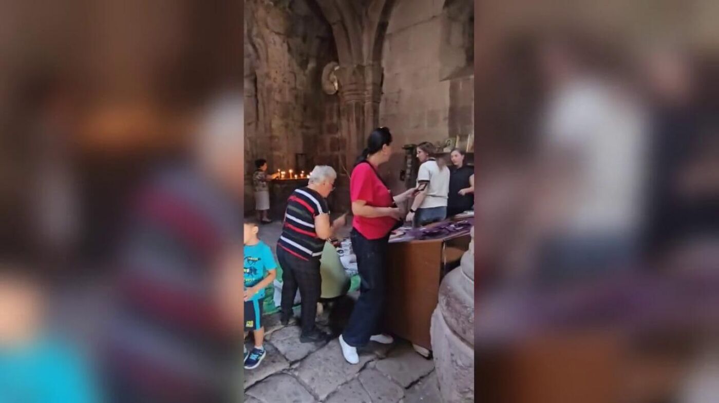Ավելի վաղ «Քաղաքացիական պայմանագիր» կուսակցության պատգամավոր Արփի Դավոյանը տեսանյութ էր հրապարակել, որում ներկայացրել էր, որ գտնվում է Հաղարծին վանական համալիրում։ Տեսանյութում երևում էր, որ համալիրի հատակին դրված են տարբեր գրքեր և եկեղեցական պարագաներ։ Տեսանյութին կից Դավոյանը գրել էր. «Չուլան և տոնավաճառ` երկուսը մեկում»։