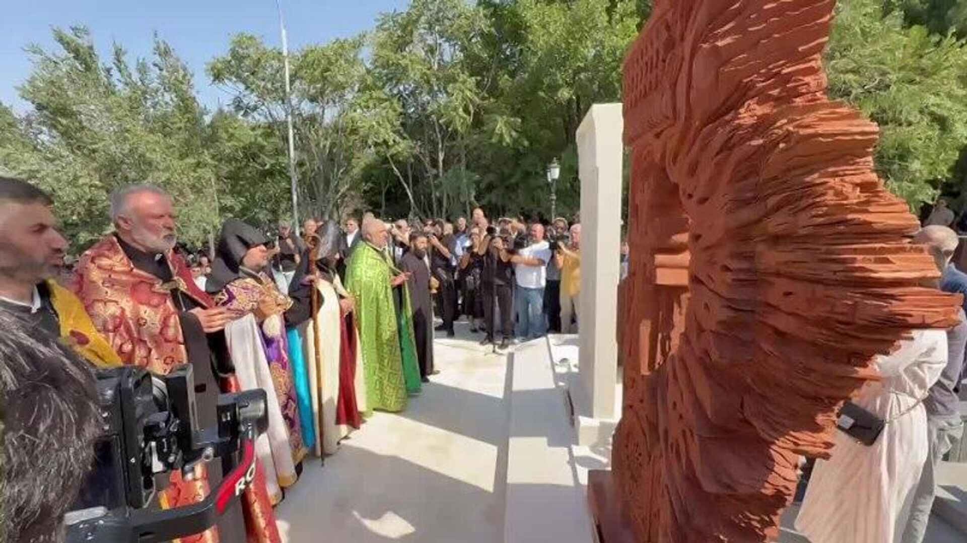 «Արցախյան երրորդ պատերազմում զոհված և անհայտ կորած զինծառայողների հարազատների միություն» ՀԿ–ի ղեկավար Արմեն Ասրյանը նշեց՝ այս հուշակոթողն իր մեջ հիմա ամփոփում է Արցախի բոլոր սրբավայրերը։
