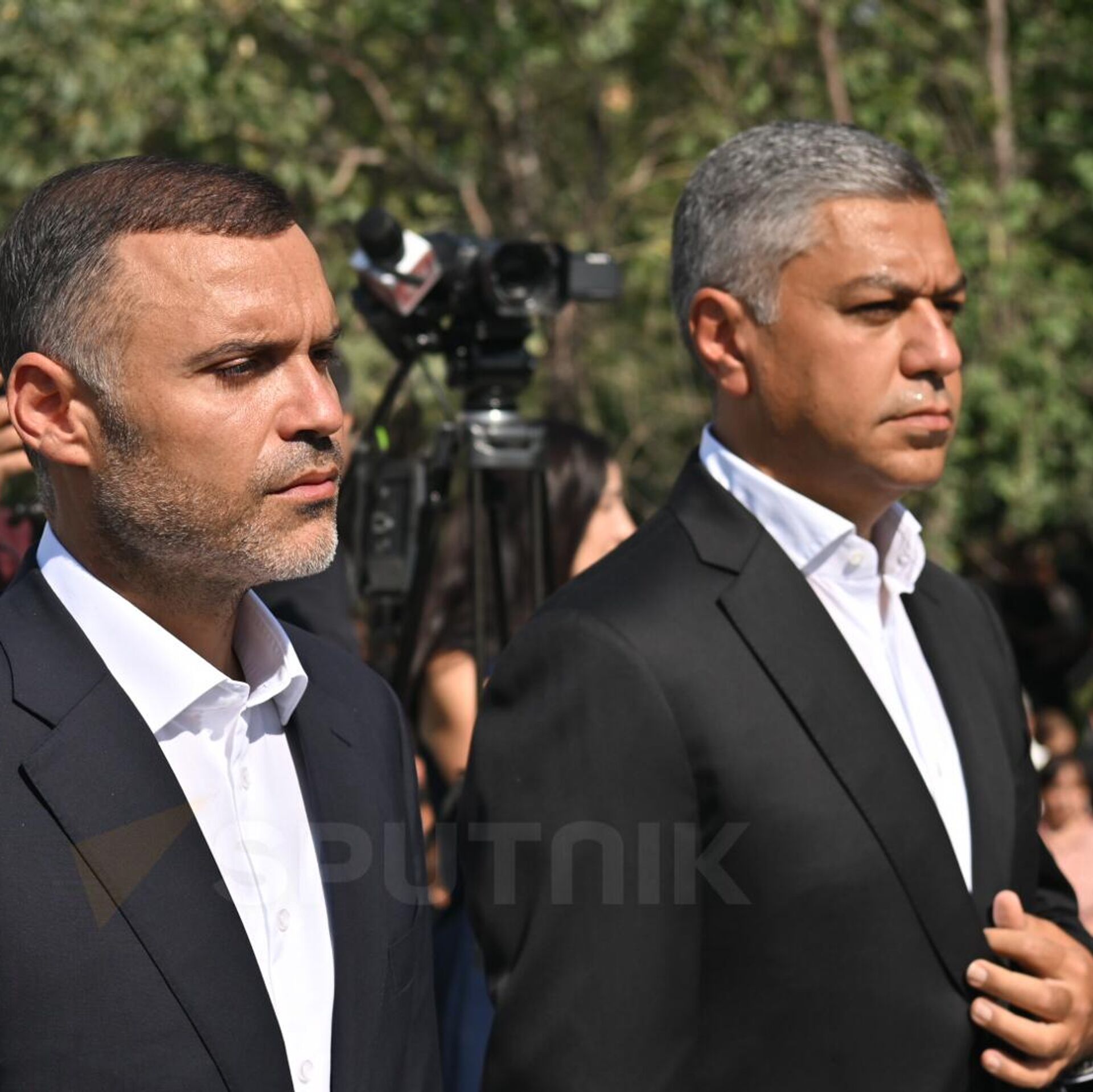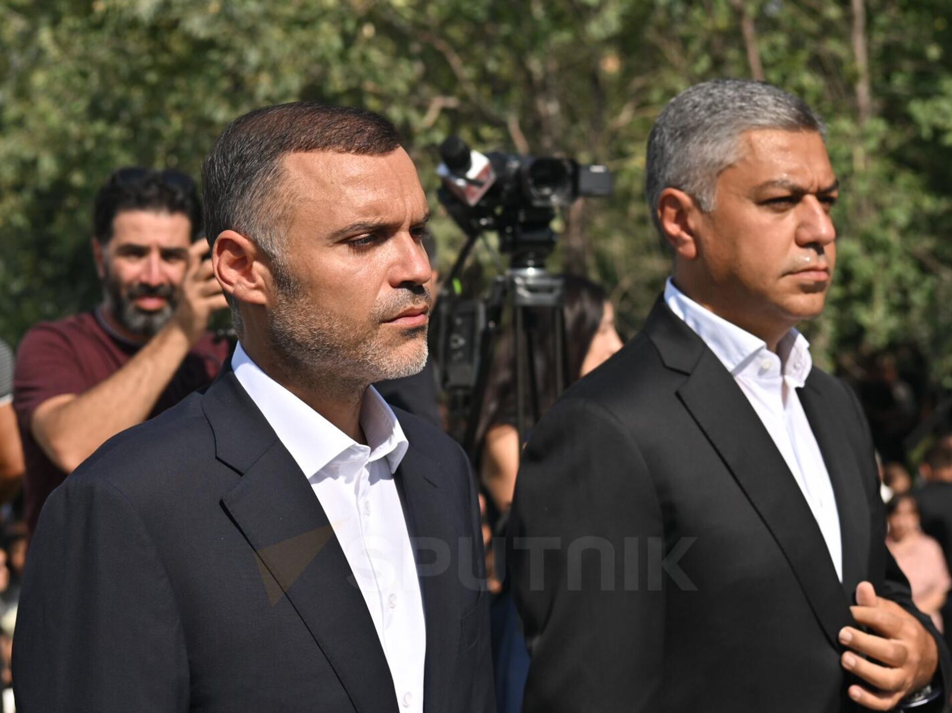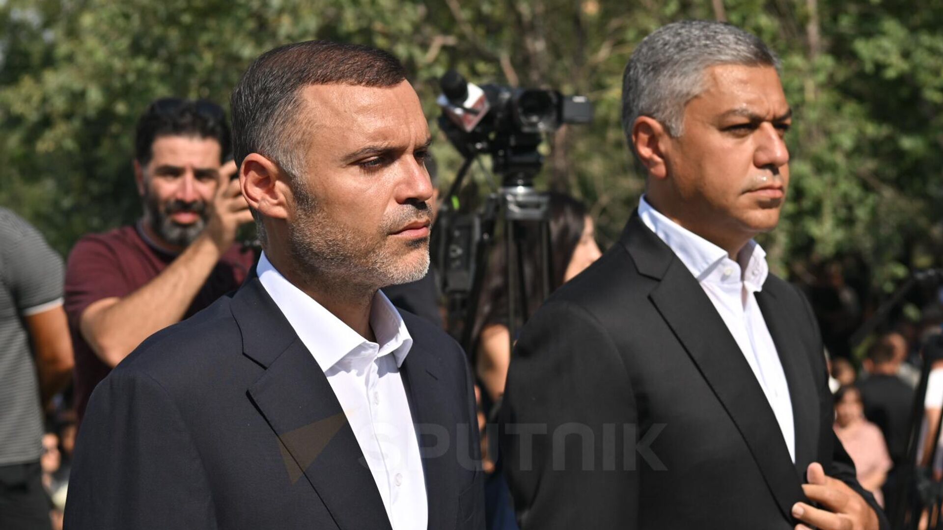 © Sputnik / Aram NersesyanКарен Саркисян и Артур Ванецян на открытии мемориального комплекса "Зов Арцаха" в Ераблуре в память о героях, павших в ходе карабахской войны, а также о невинных жертвах трагического взрыва 25 сентября (2 сентября 2025). Еревaн