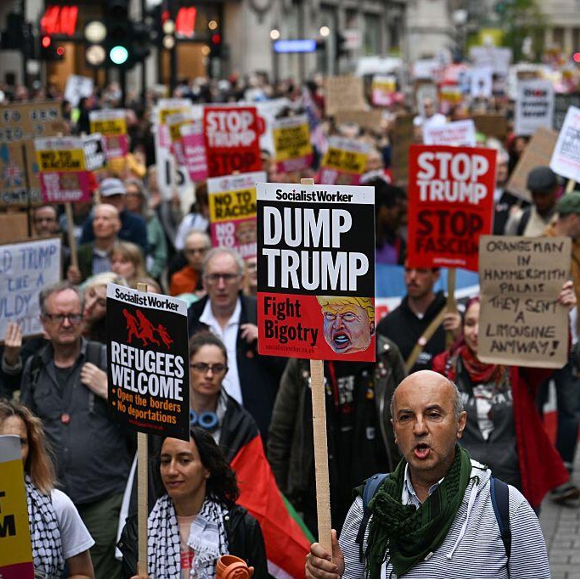 Ցույցը կազմակերպել է Stop Trump Coalition–ը։ Մասնակիցները հավաքվել են Պորտլենդ փլեյս փողոցում` BBC-ի գլխամասի դիմաց՝ ձեռքերում պաստառներ, որոնք դժգոհություն են արտահայտում վարչապետ Կիր Սթարմերի՝ Թրամփին երկրորդ անգամ պաշտոնական այցով հրավիրելու որոշման դեմ։ Բրիտանիայի ժամանակակից պատմության մեջ ոչ մի օտարերկրյա քաղաքական առաջնորդ նման պատվի չի արժանացել։