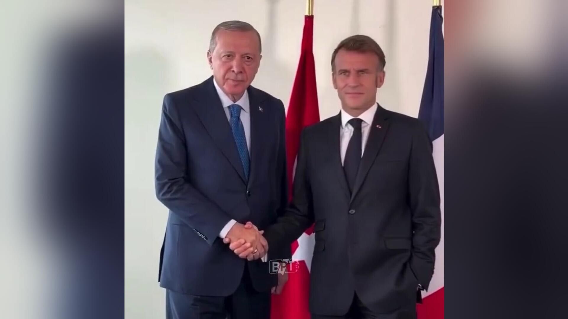Սկզբում Թուրքիայի առաջնորդ Ռեջեփ Էրդողանը ողջունել է ֆրանսիացի գործընկեր Էմանուել Մակրոնին։ Մակրոնը հարցրել է, թե ինչպե՞ս է Էրդողանը։