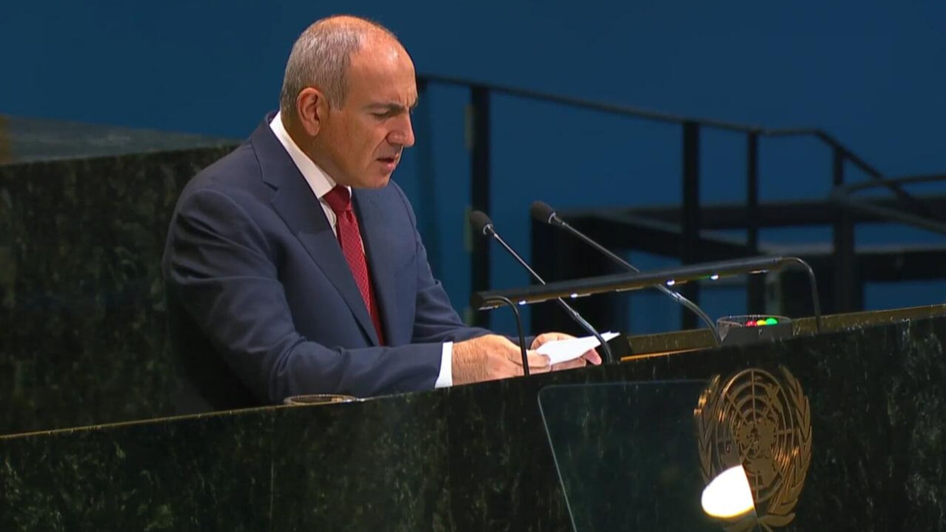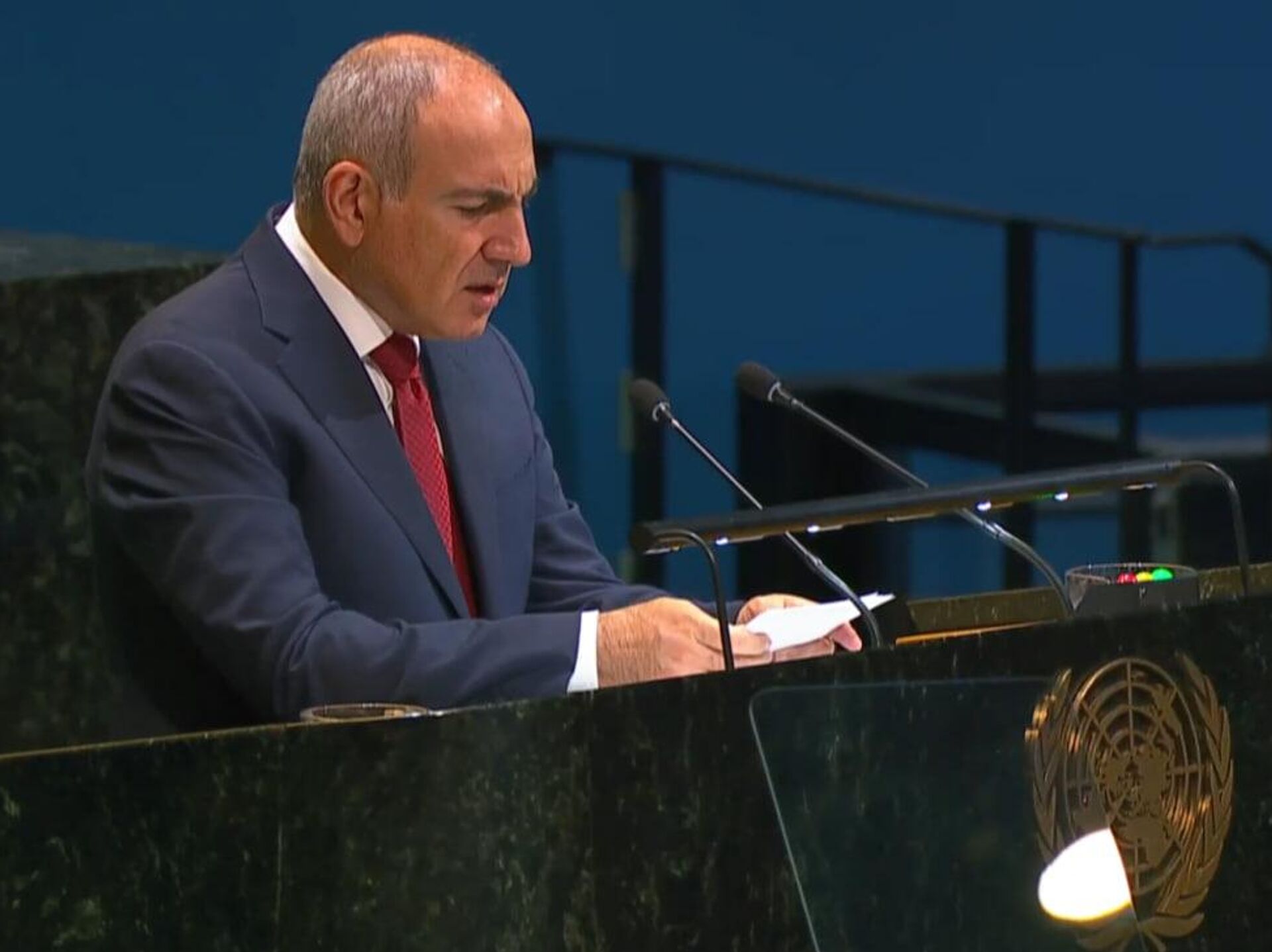 նիկոլ փաշինյան, իշխան սաղաթելյան, էդուարդ շարմազանով, միավորված ազգերի կազմակերպություն (մակ), գերի, ելույթ, ադրբեջան, խաղաղության պայմանագիր, իլհամ ալիև