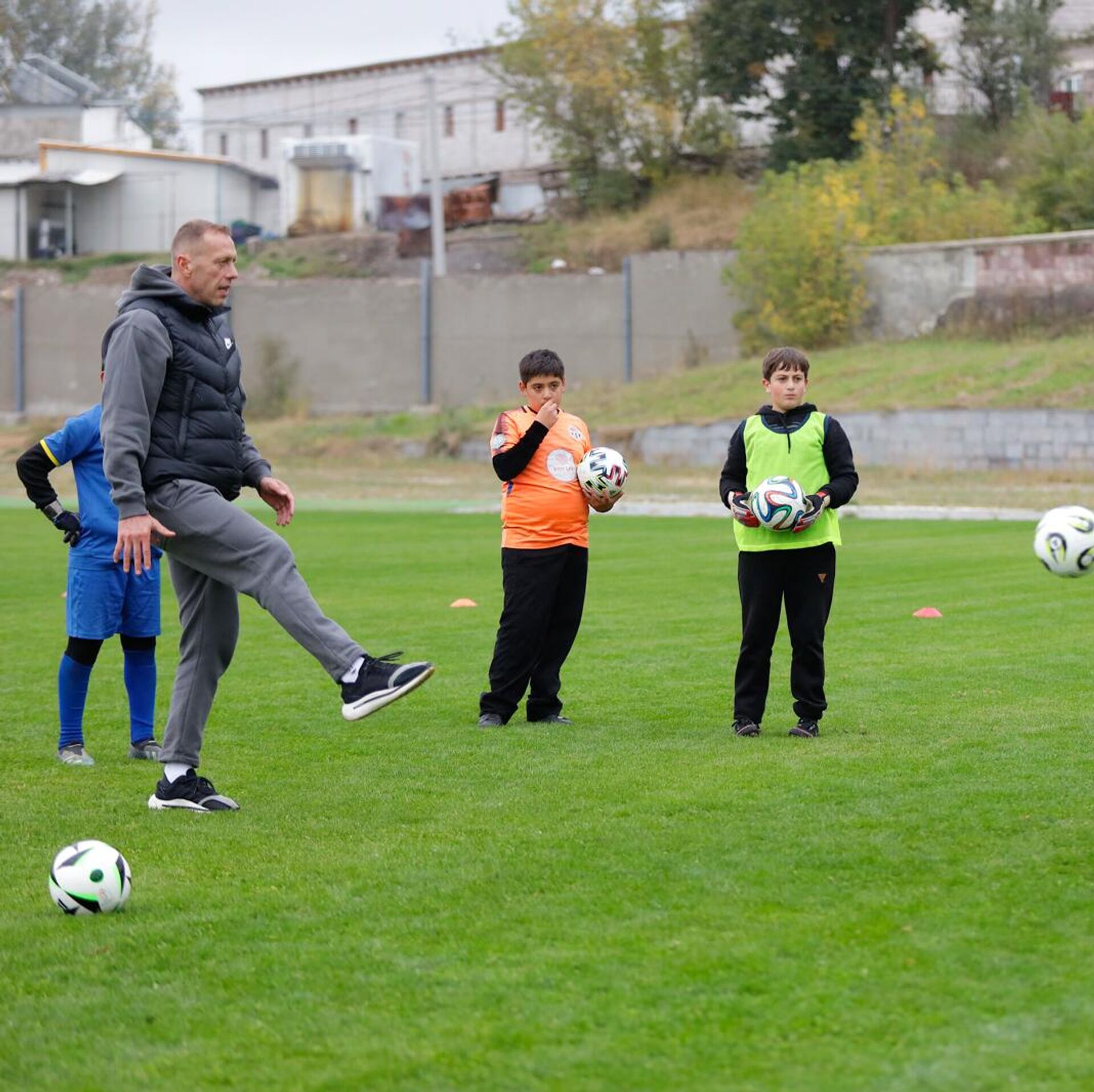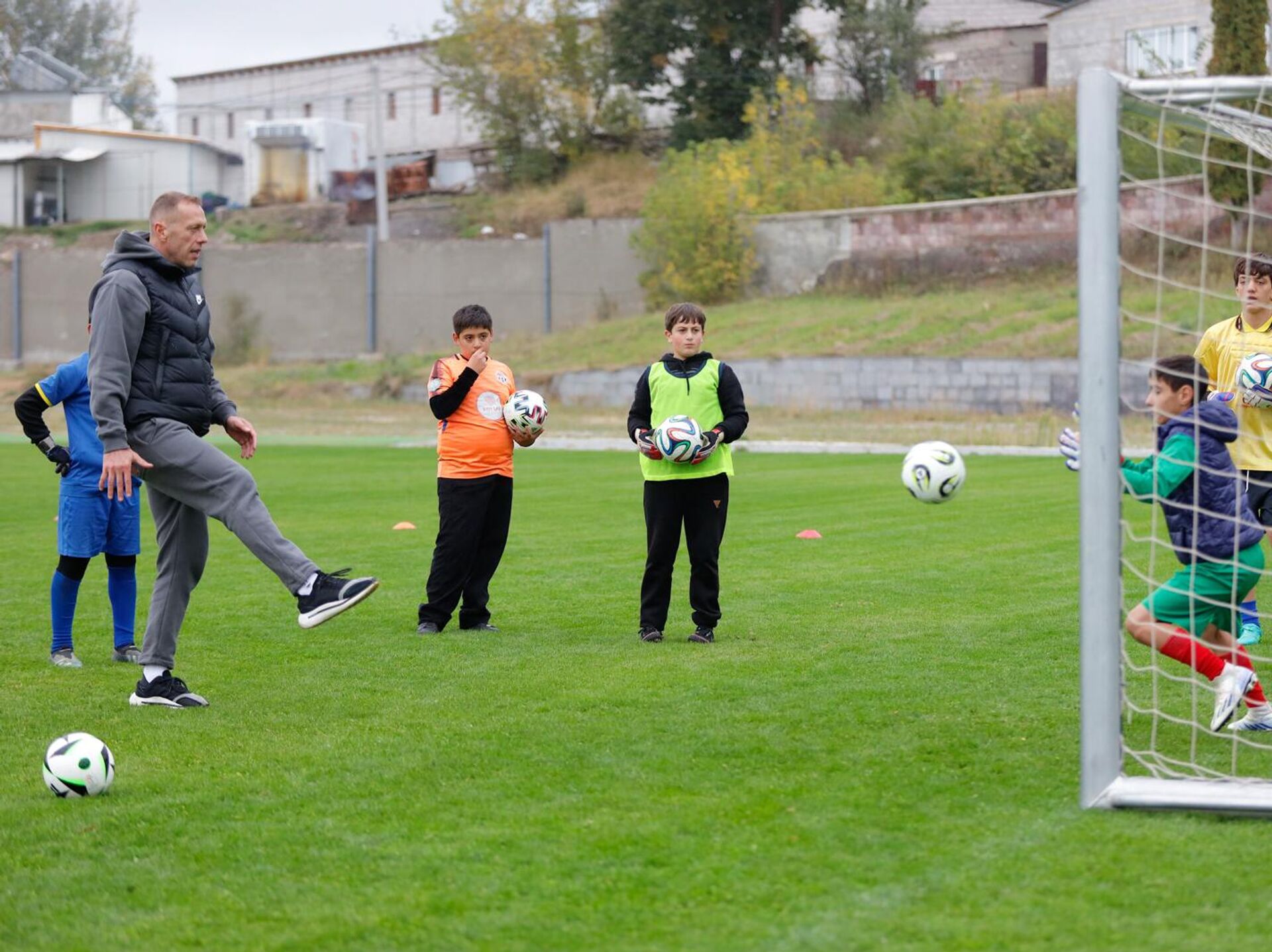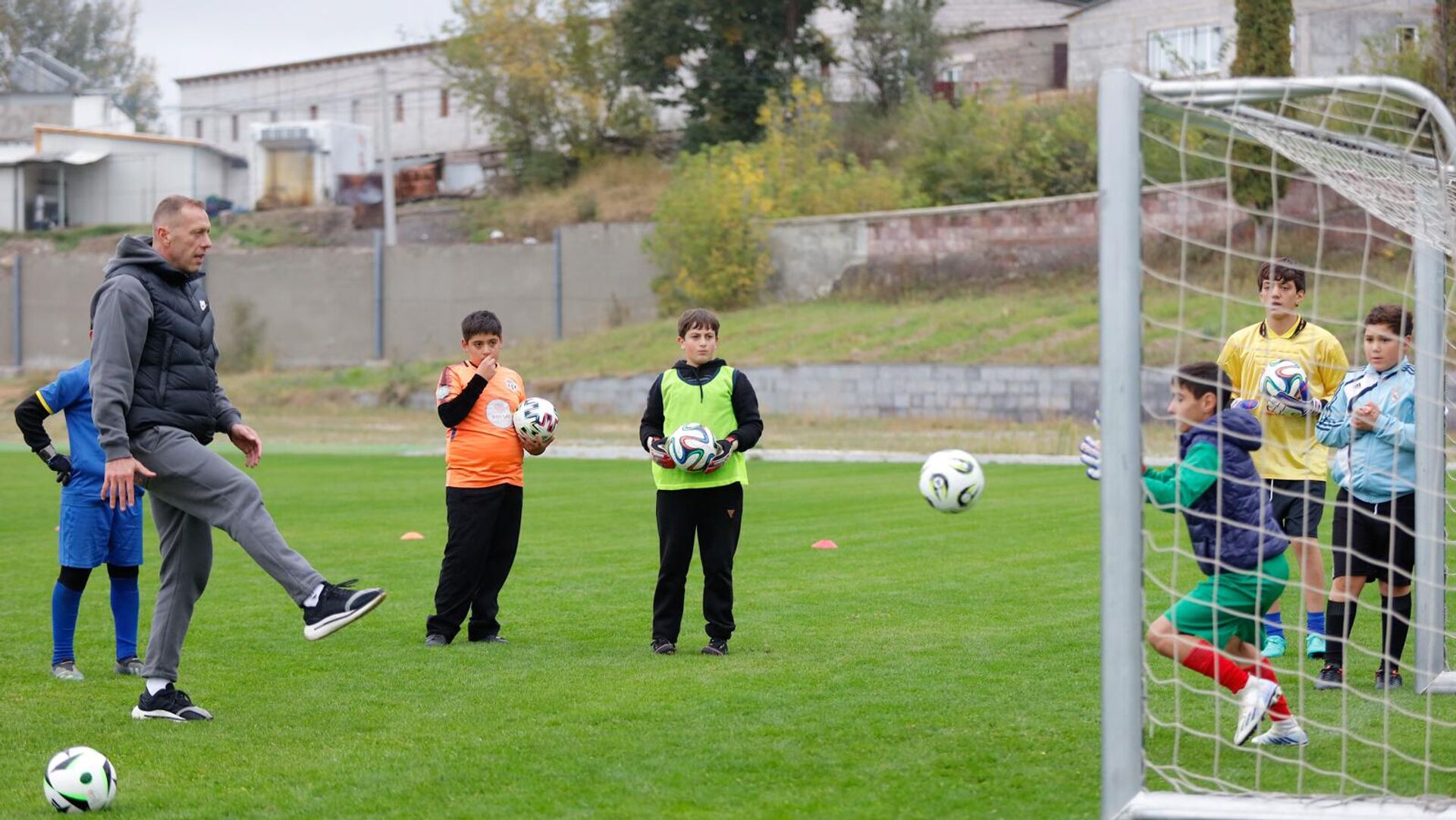 Պատանի ֆուտբոլիստները լեգենդար Սարգիս Հովհաննիսյանի և Դմիտրի Լոսկովի հետ