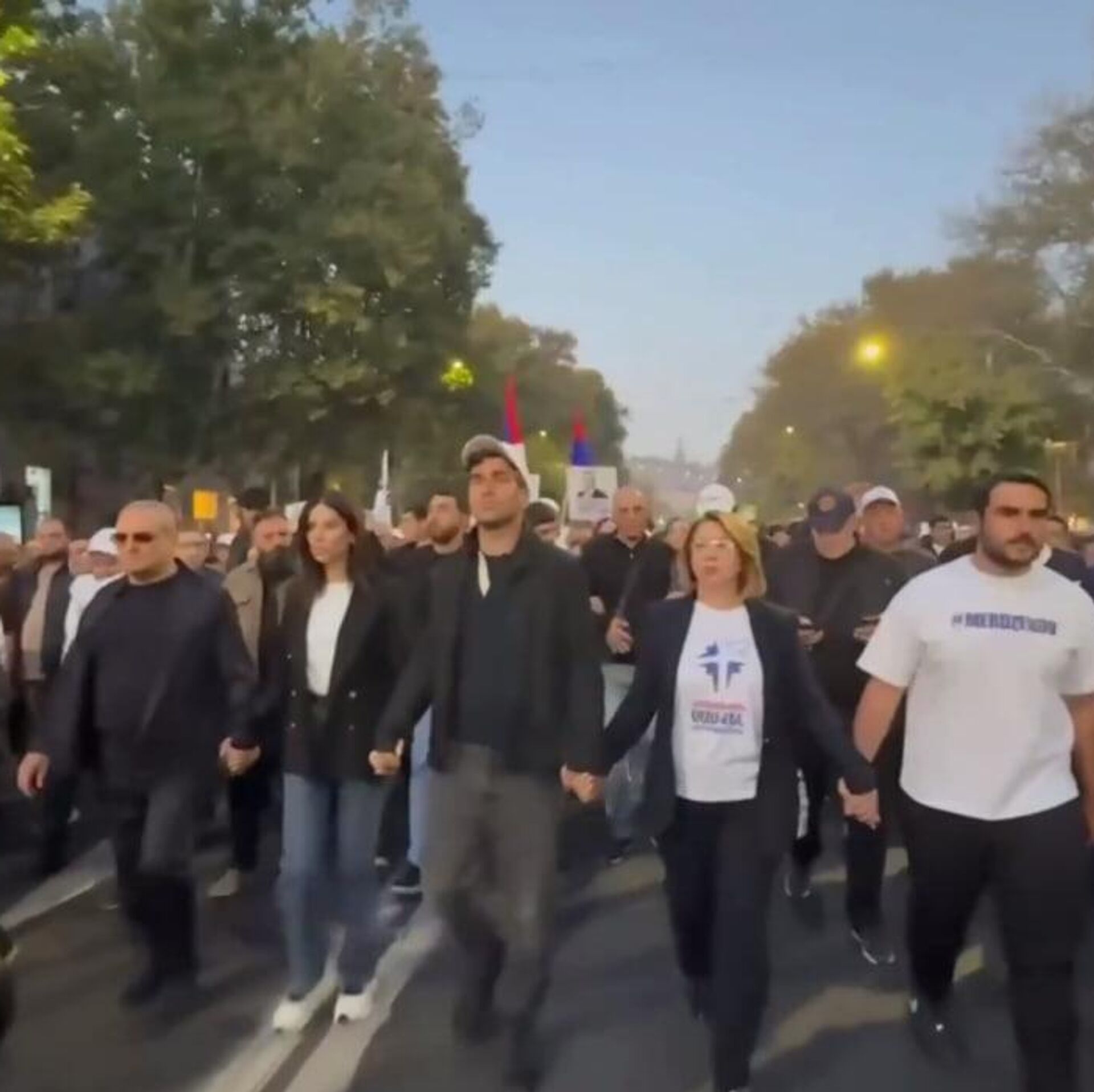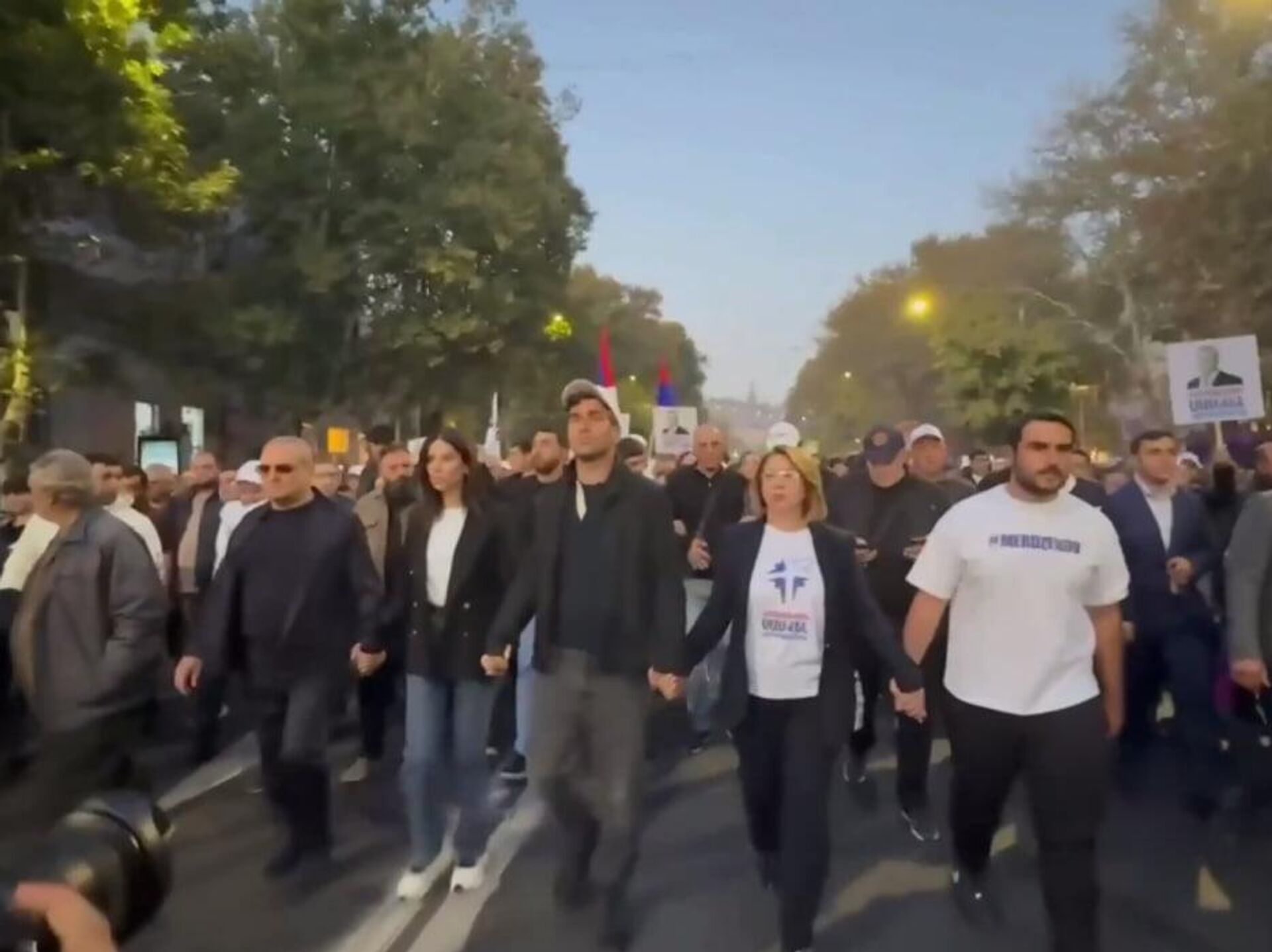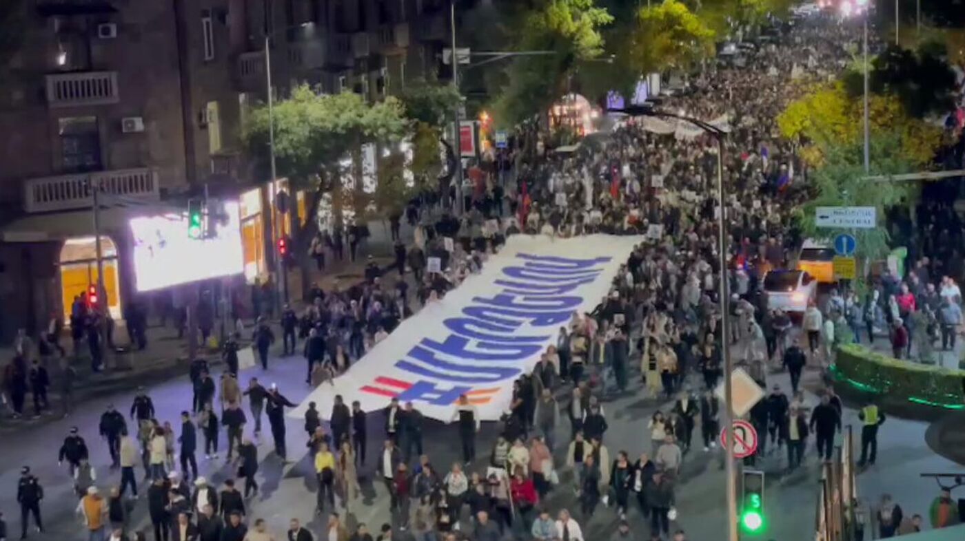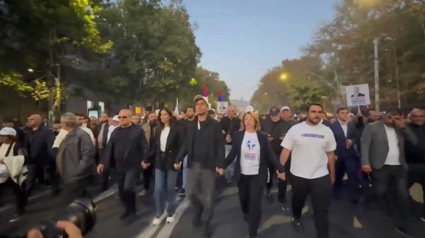 ԵՐԵՎԱՆ, 18 հոկտեմբերի – Sputnik. Երևանի Ազատության հրապարակում կազմակերպված հանրահավաքի մասնակիցները քայլերթով շարժվում են դեպի ՀՀ ազգային անվտանգության շենք։
