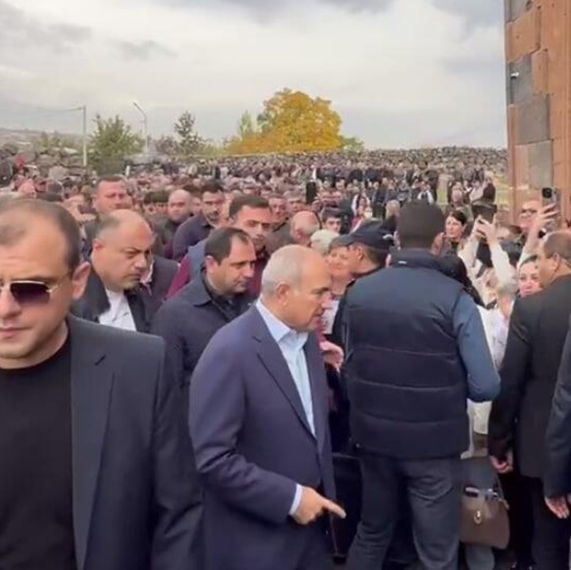 Տեղում է նաև ՀՀ ոստիկանապետ Արամ Ղազարյանը, որը չցանկացավ պատասխանել լրագրողների հարցերին։