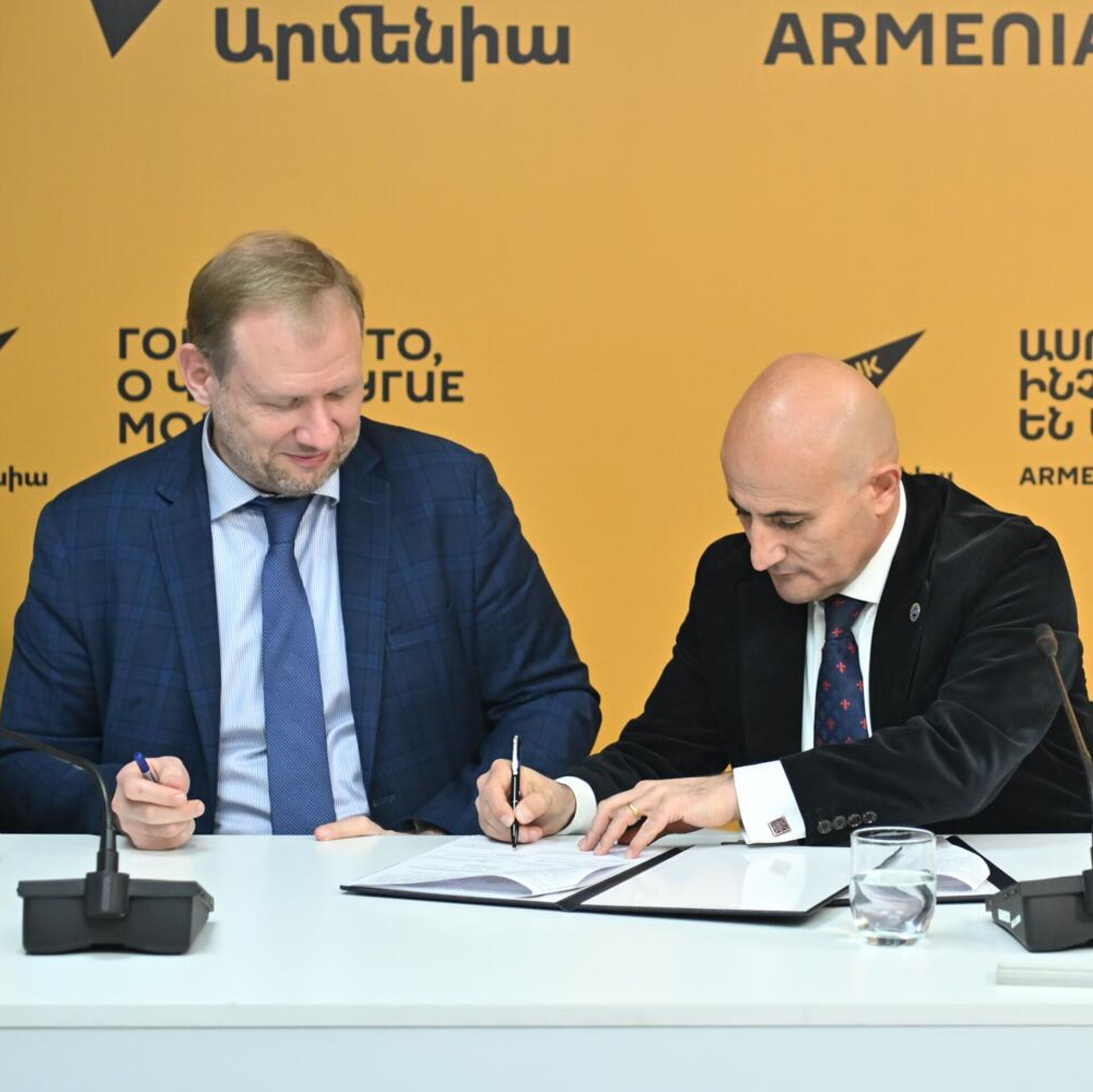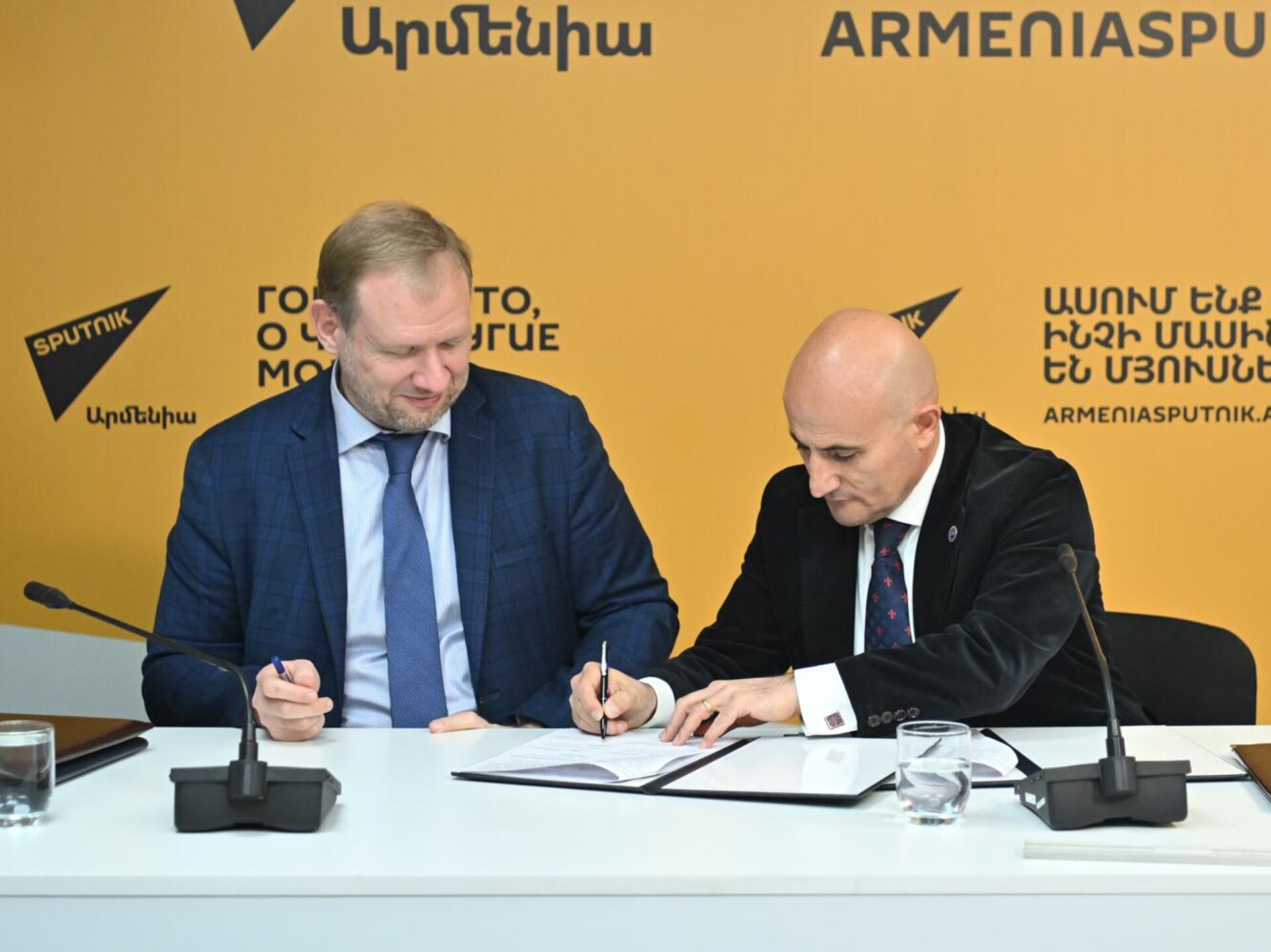 Sputnik Արմենիա մուլտիմեդիոն մամուլի կենտրոնում համագործակցության հուշագիր ստորագրեցին «Հարավկովկասյան երկաթուղի» ընկերության գլխավոր տնօրեն Ալեքսեյ Մելնիկովը և Հայաստանի տուրիզմի ֆեդերացիայի նախագահ Մեխակ Ապրեսյանը։