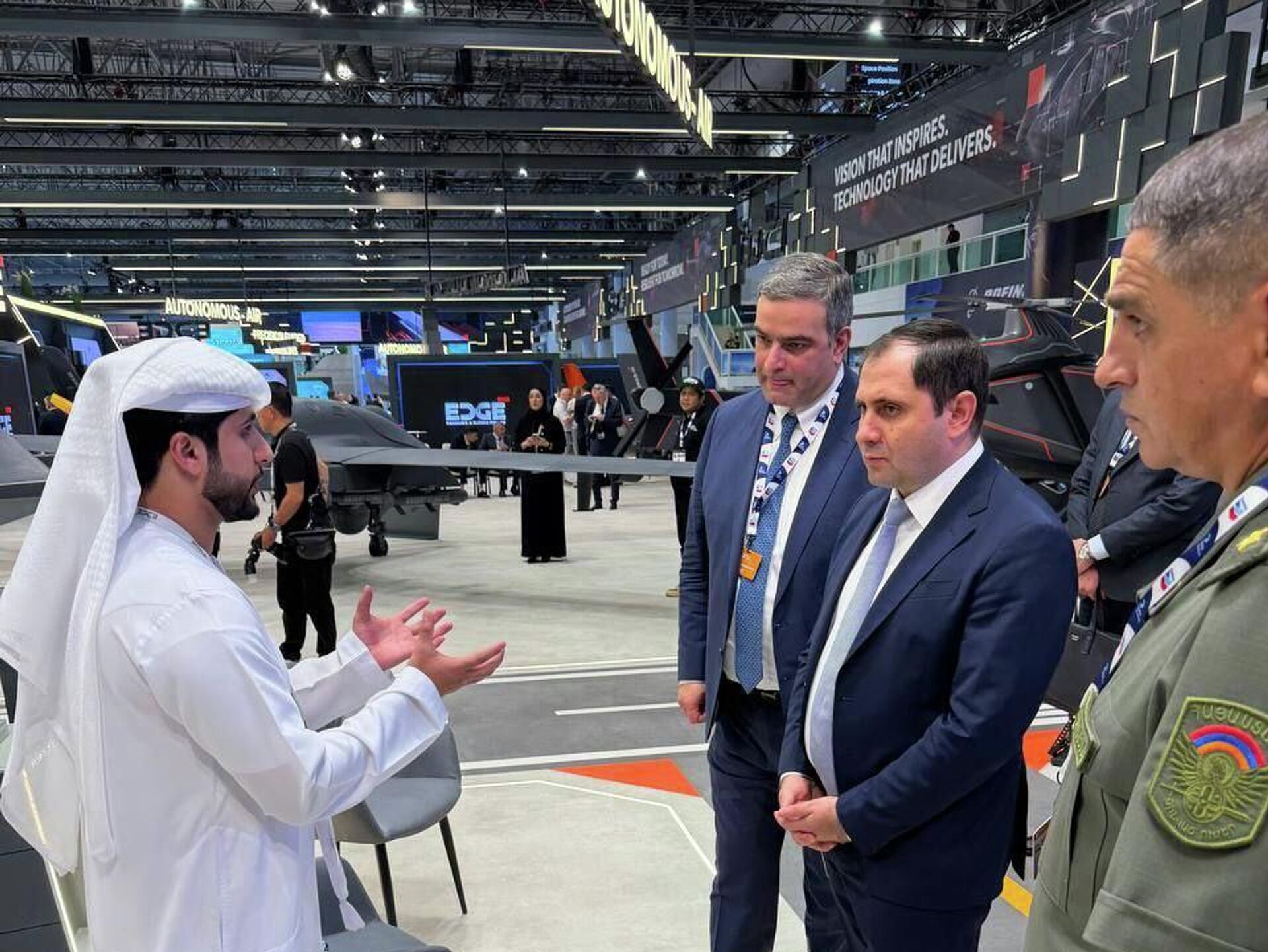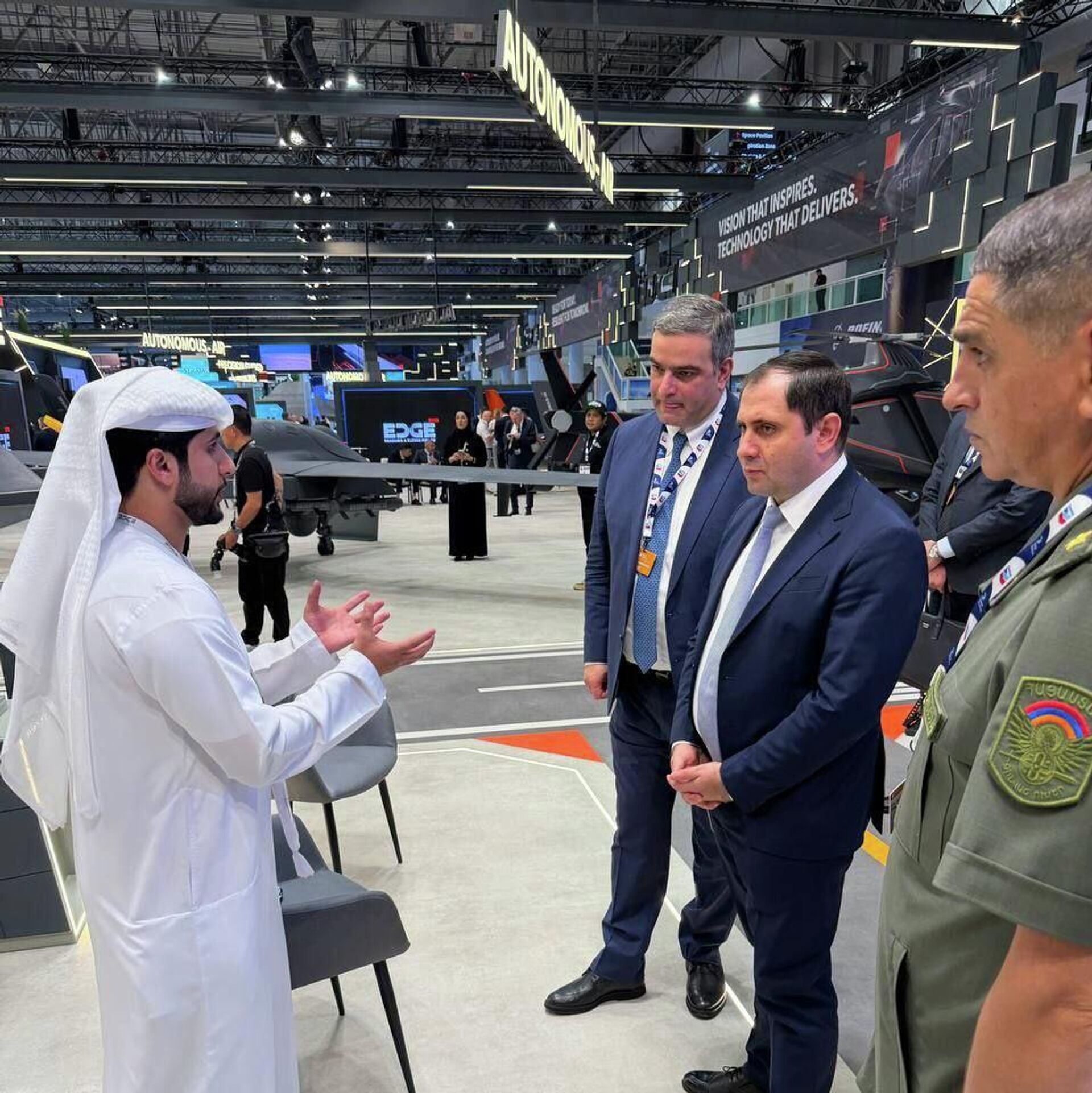 ԵՐԵՎԱՆ, 18 նոյեմբերի – Sputnik. ՀՀ պաշտպանության նախարար Սուրեն Պապիկյանն այսօր մասնակցել է «Dubai Airshow 2025» միջազգային ցուցահանդեսի բացման հանդիսավոր արարողությանը։ Տեղեկությունը հայտնում է ՀՀ ՊՆ մամուլի ծառայությունը։Նշվում է, որ Պապիկյանը ներկա է եղել նաև օդային ցուցադրություններին:ՀՀ պաշտպանության նախարարը շրջել է ցուցահանդեսի տաղավարներում, ծանոթացել ցուցանմուշներին:Հիշեցնենք, որ ՀՀ պաշտպանության նախարար Սուրեն Պապիկյանի գլխավորած պատվիրակությունն աշխատանքային այցով Արաբական Միացյալ Էմիրություններ է մեկնել նոյեմբերի 16–ին: Հայաստանն ու Արաբական Միացյալ Էմիրությունները պատրաստվում են պաշտպանության բնագավառում համագործակցության մասին համաձայնագիր ստորագրել։