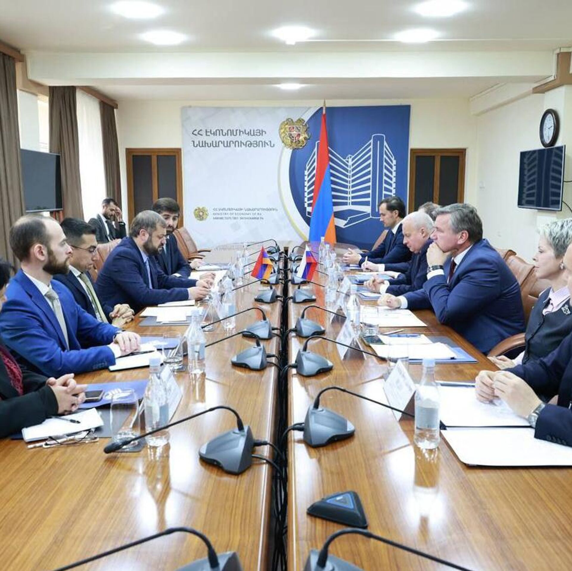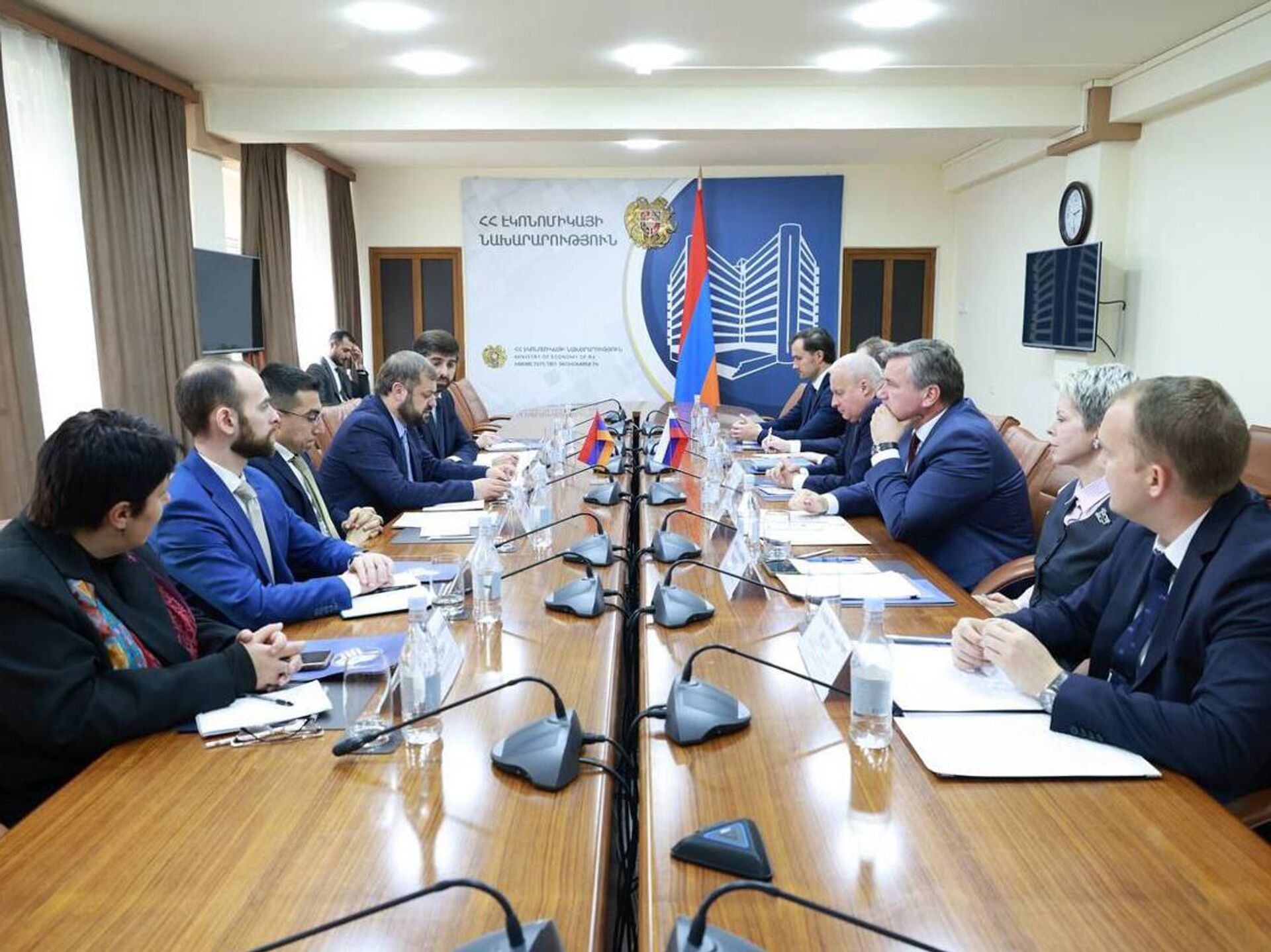 ԵՐԵՎԱՆ, 21 նոյեմբերի – Sputnik. ՀՀ էկոնոմիկայի նախարար Գևորգ Պապոյանը ՌԴ-ի հետ տնտեսական հարաբերությունների ընդլայնմանն ու առևտրաշրջանառության ավելացմանն առնչվող հարցեր է քննարկել ՀՀ-ում ՌԴ արտակարգ և լիազոր դեսպան Սերգեյ Կոպիրկինի հետ։ Տեղեկությունը հայտնում է ՀՀ էկոնոմիկայի նախարարությունը։«Առանձին անդրադարձ է կատարվել ագրոարդյունաբերության ոլորտում փոխգործակցության, գյուղատնտեսական արտադրանքի անխափան արտահանումների կազմակերպման, համատեղ ձեռնարկությունների ստեղծման, բուսասանիտարիայի ոլորտում փորձի փոխանակման հնարավորություններին»,–նշված է հաղորդագրության մեջ։Հանդիպման ընթացքում առավել հեռանկարային ուղղությունների թվում կարևորվել է նաև զբոսաշրջության ոլորտում հարաբերությունների խորացումը։Ավելի վաղ ՌԴ փոխվարչապետ Ալեքսեյ Օվերչուկը հայտարարել էր, որ Հայաստանի և Ռուսաստանի առևտուրն այս տարի զգալիորեն կրճատվել է։ Նա նշել էր, որ հնարավոր է, որ մինչև տարեվերջ ապրանքաշրջանառությունը կրճատվի երկու անգամ ՝ նախորդ տարվա համեմատ: