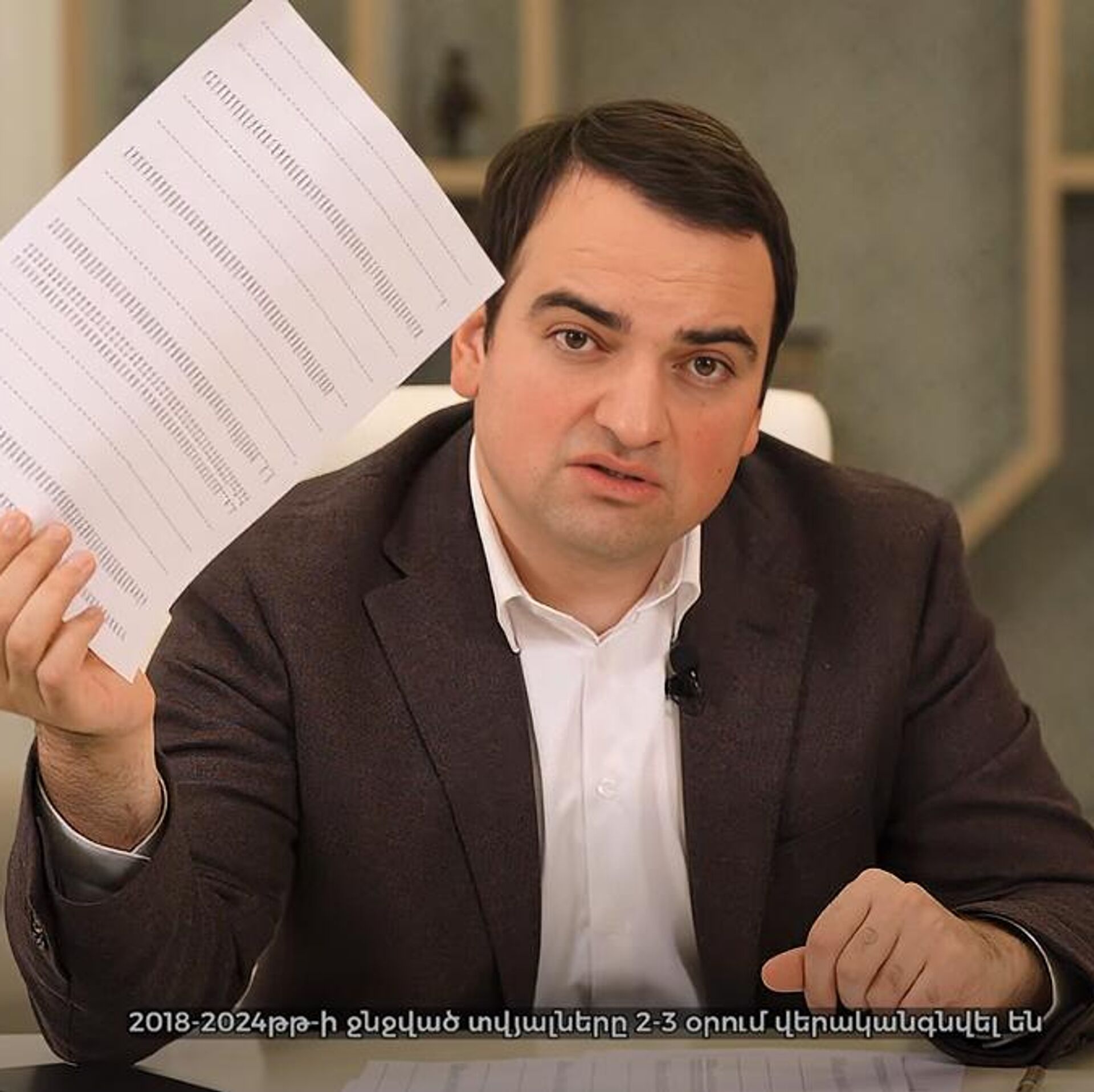 ԵՐԵՎԱՆ, 25 նոյեմբերի – Sputnik. «Հայաստանի էլեկտրական ցանցեր» ՓԲԸ–ի` 2018–2024 թվականների տվյալները ոչ թե անհետացել են, այլ տեխնիկական խնդիրների պատճառով ջնջվել են և 2-3 օր անց վերականգնվել։ Այս մասին տեսաուղերձով հայտարարել է «Տաշիր գրուպ» հոլդինգի ղեկավարի տեղակալ, ՀԷՑ-ի տնօրենների խորհրդի նախագահ Նարեկ Կարապետյանը։