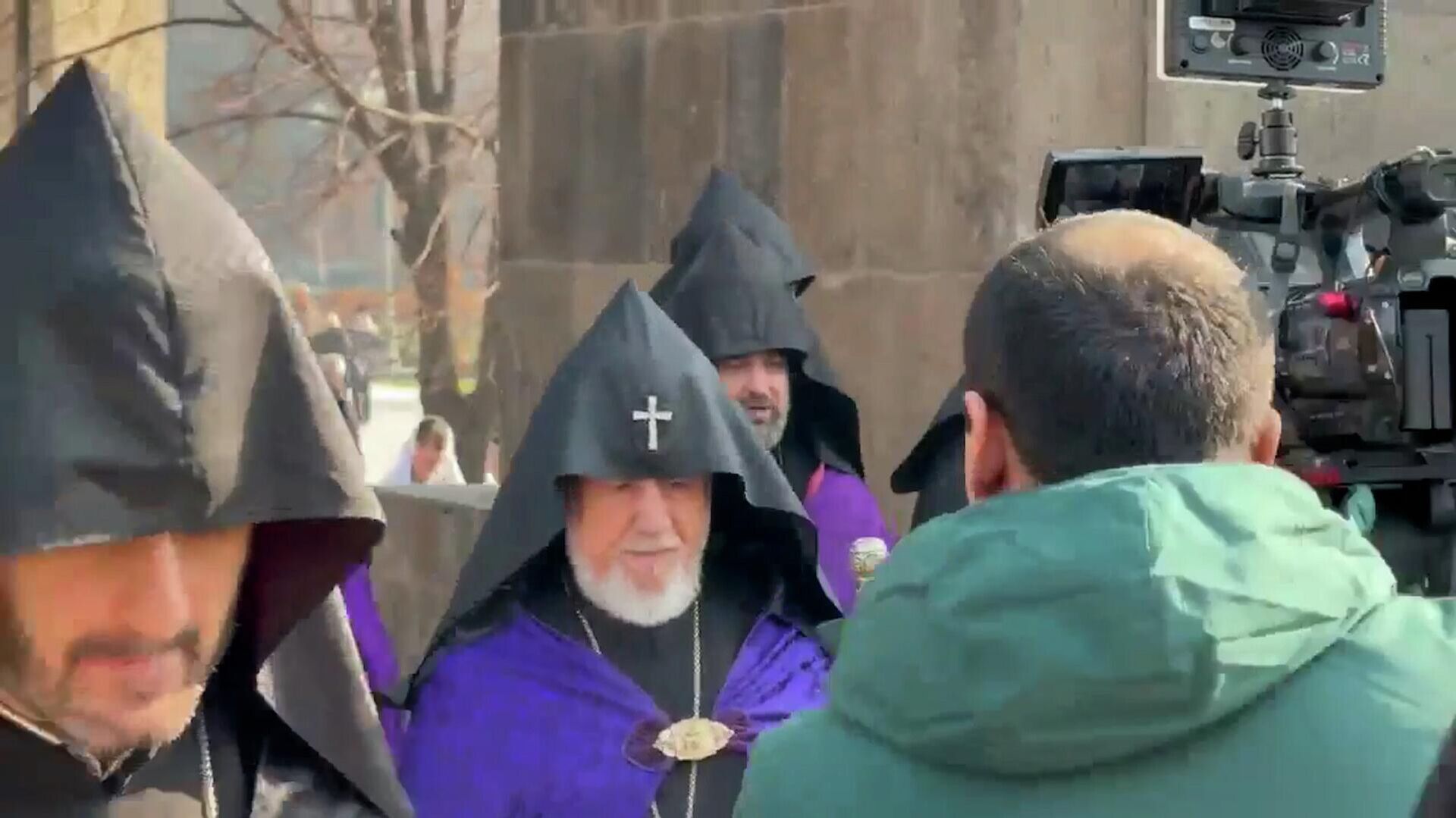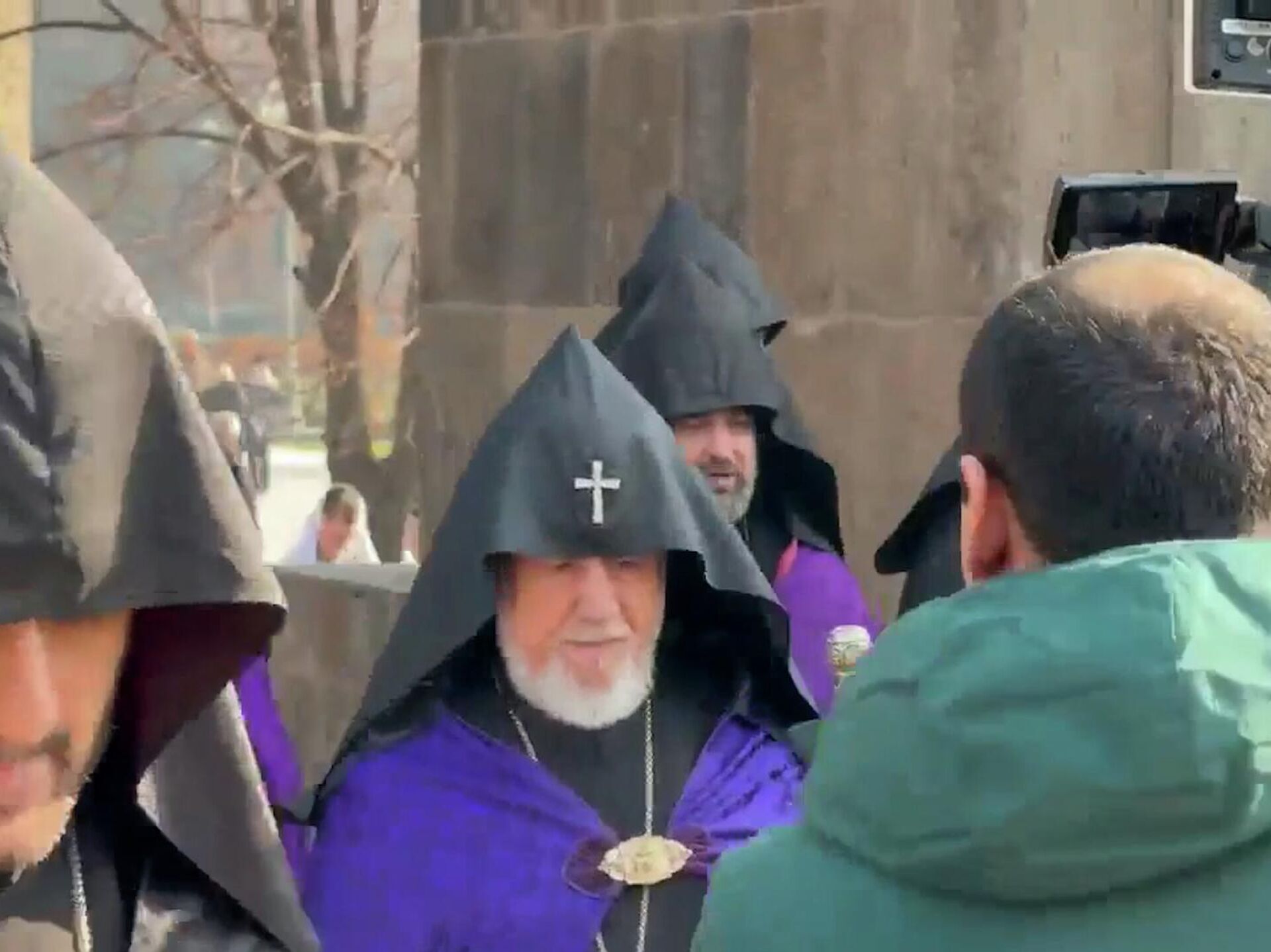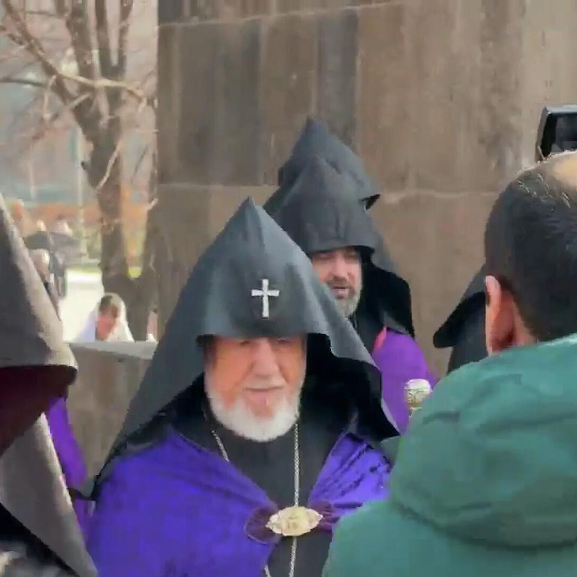 Sputnik Արմենիայի կադրերում երևում է, թե ինչպես են մարդիկ մոտենում նրան և օրհնություն ստանում։