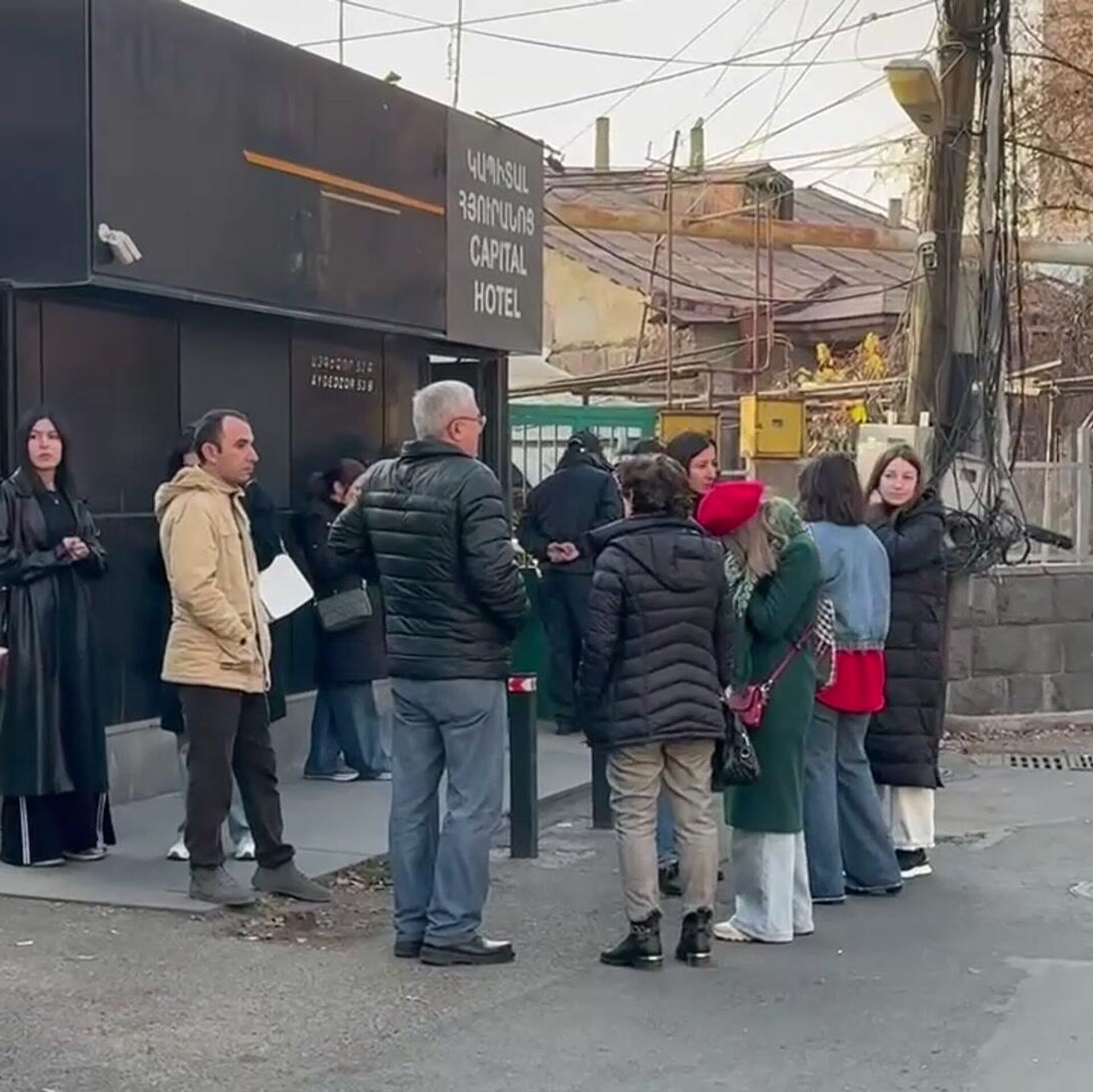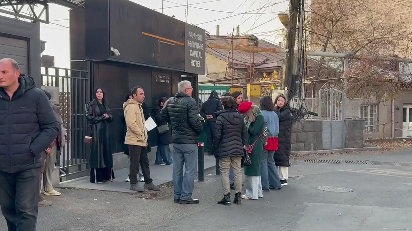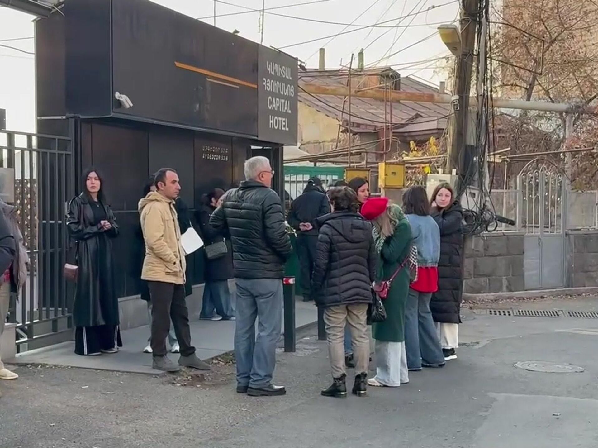 Երևանում Արցախի թեմի առաջնորդարանի մոտ հավաքվածները պահանջում են թեմի առաջնորդից ներողություն խնդրել Նիկոլ Փաշինյանի հետ հանդիպելու համար