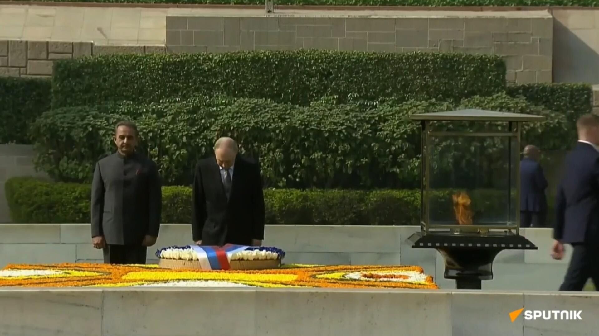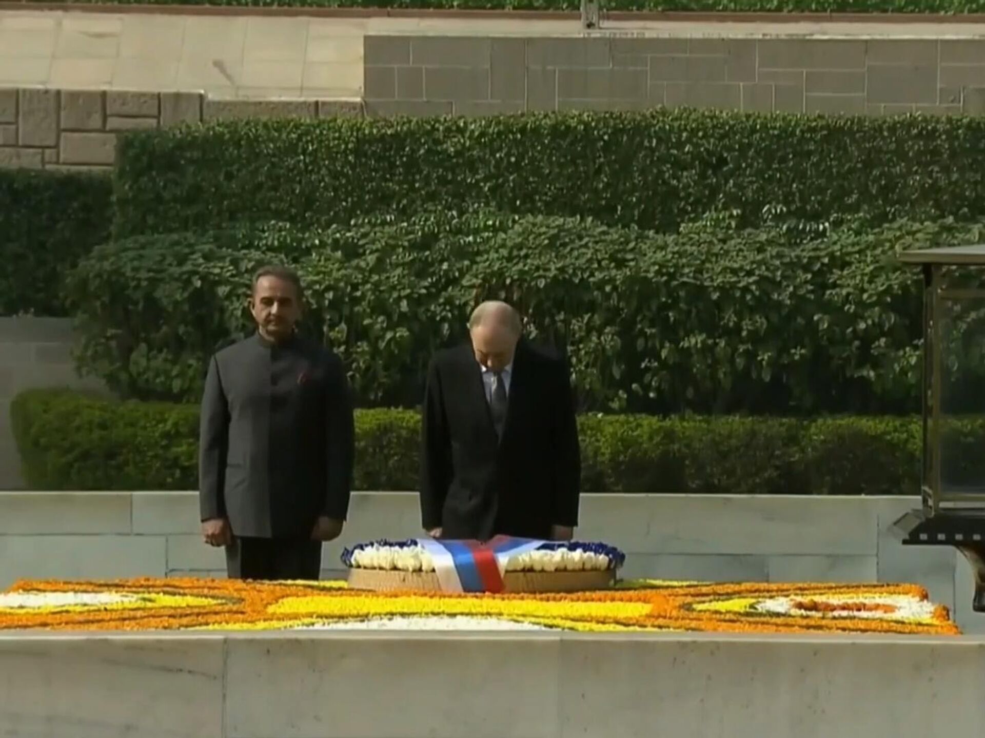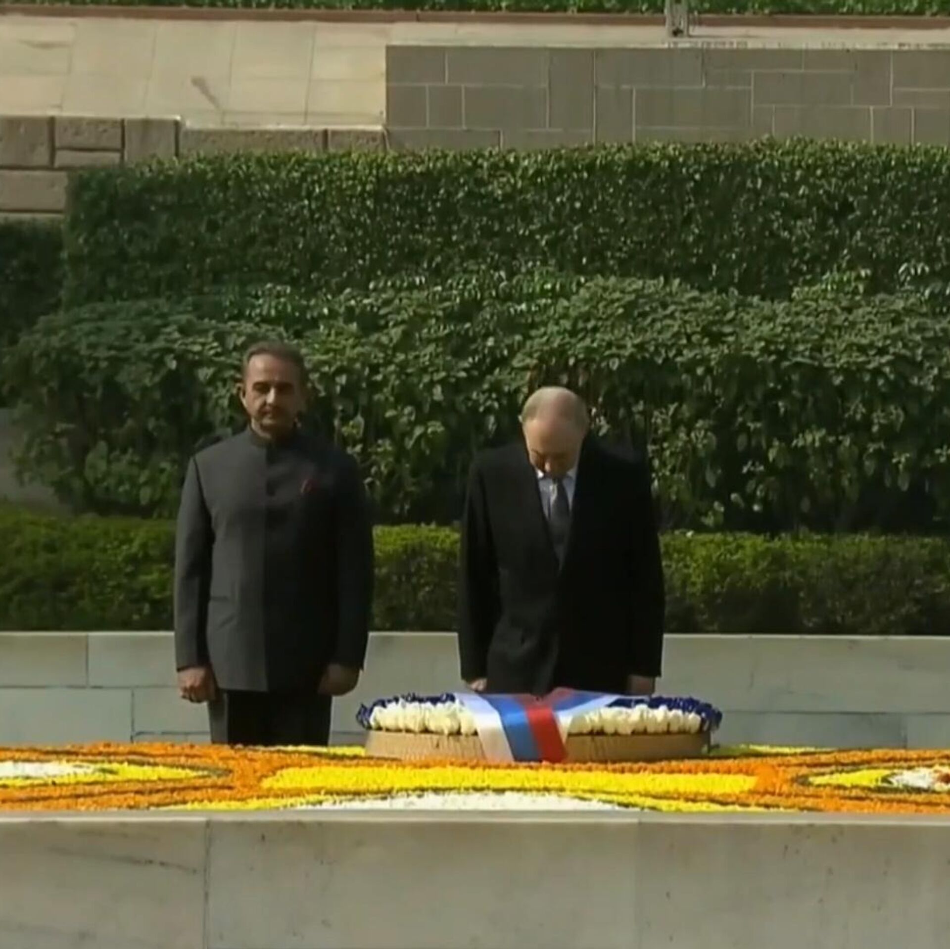 Պուտինի Հնդկաստան այցի պաշտոնական մասը սկսվել է բրիտանական գաղութային տիրապետությունից Հնդկաստանի ազատագրման համար պայքարած, 1948 թվականին սպանված Մահաթմա Գանդիի հուշահամալիրում ծաղկեպսակի տեղադրմամբ: