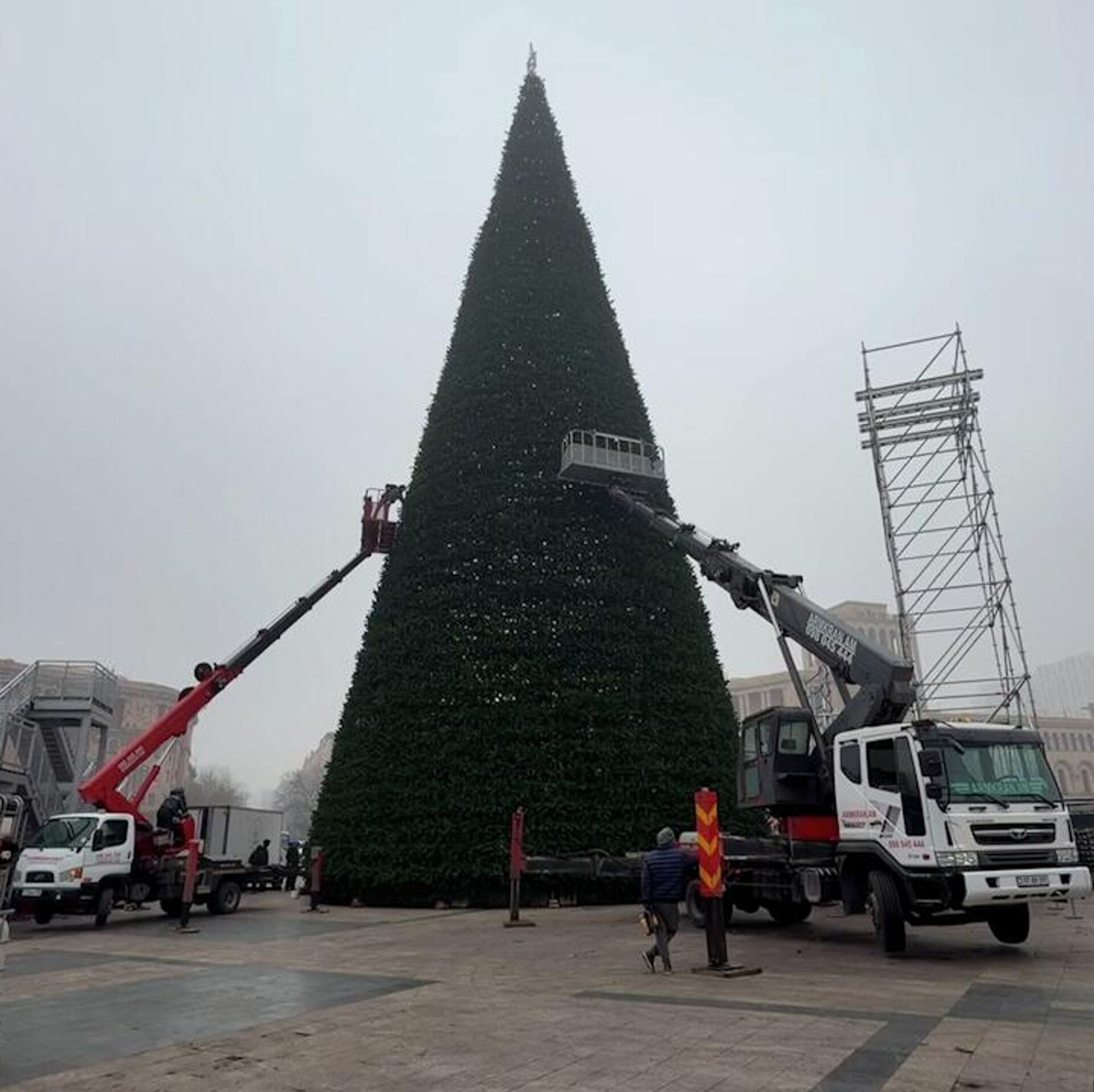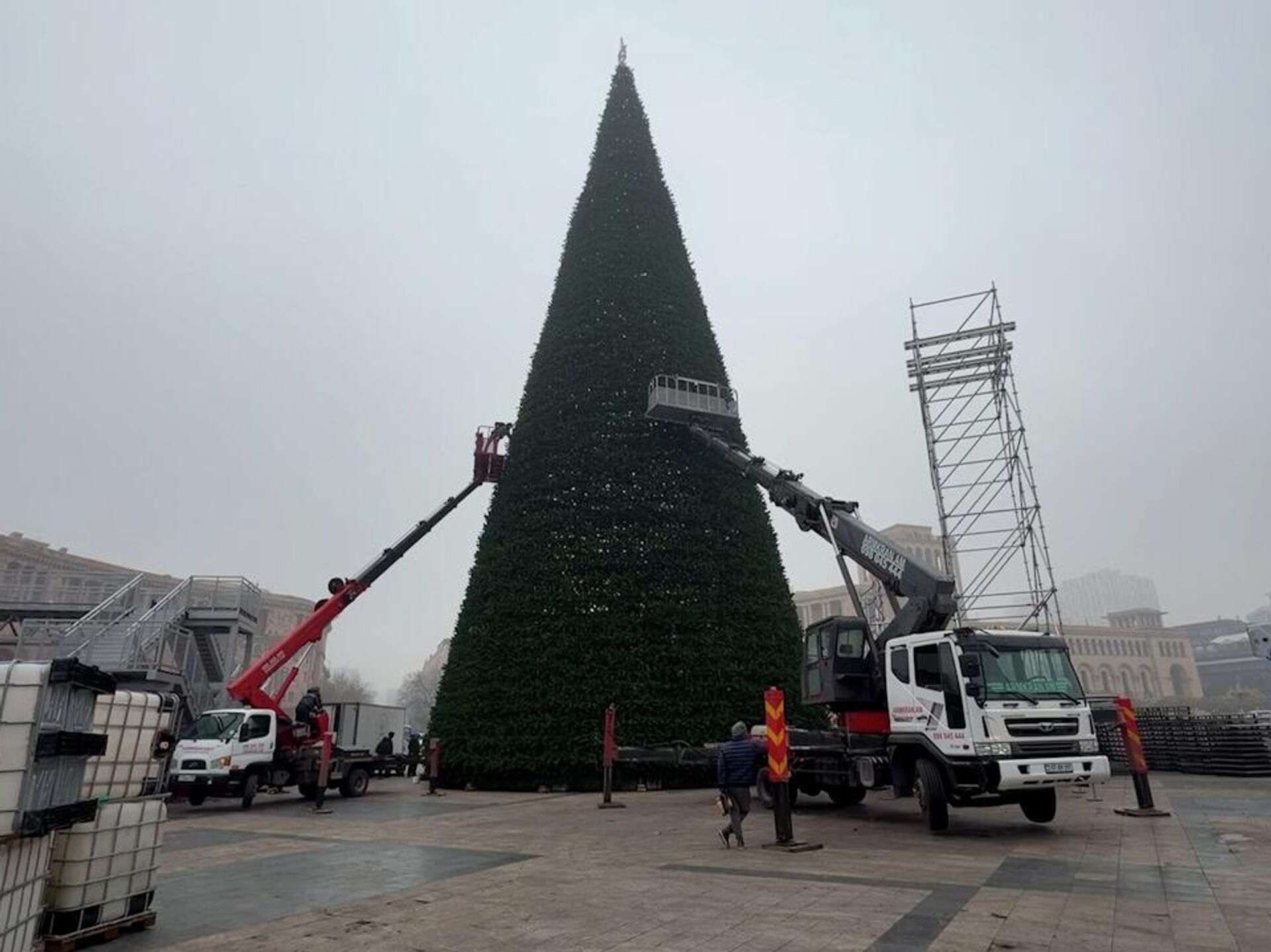 Երևանի գլխավոր տոնածառը նոր շուք է ստացել ՌԴ-ից բերված ճյուղերով