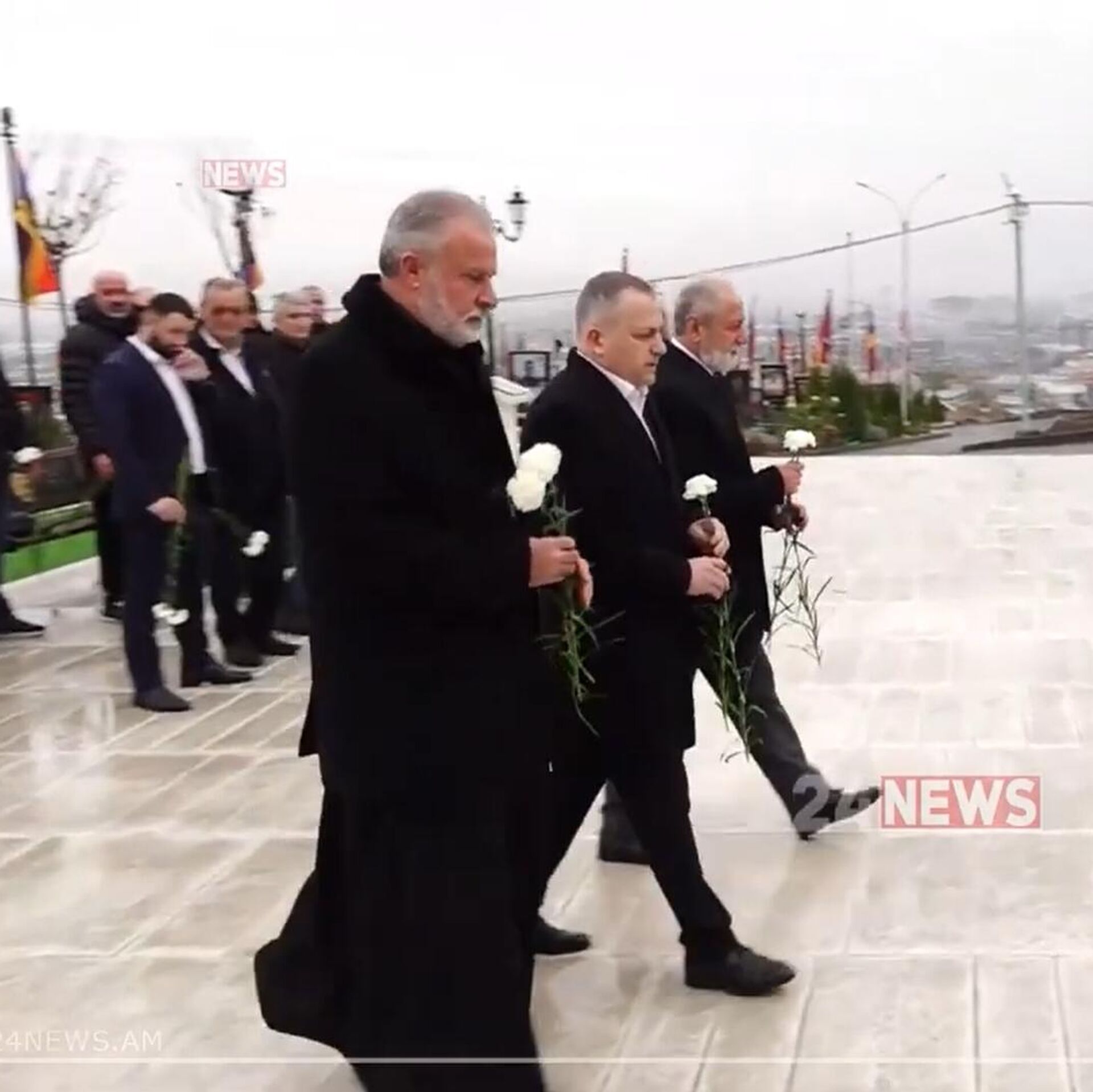 Արցախի նախկին նախագահ Սամվել Շահրամանյանի գլխավորությամբ Արցախի քաղաքական գործիչները ծաղիկներ խոնարհեցին Եռաբլուրում։