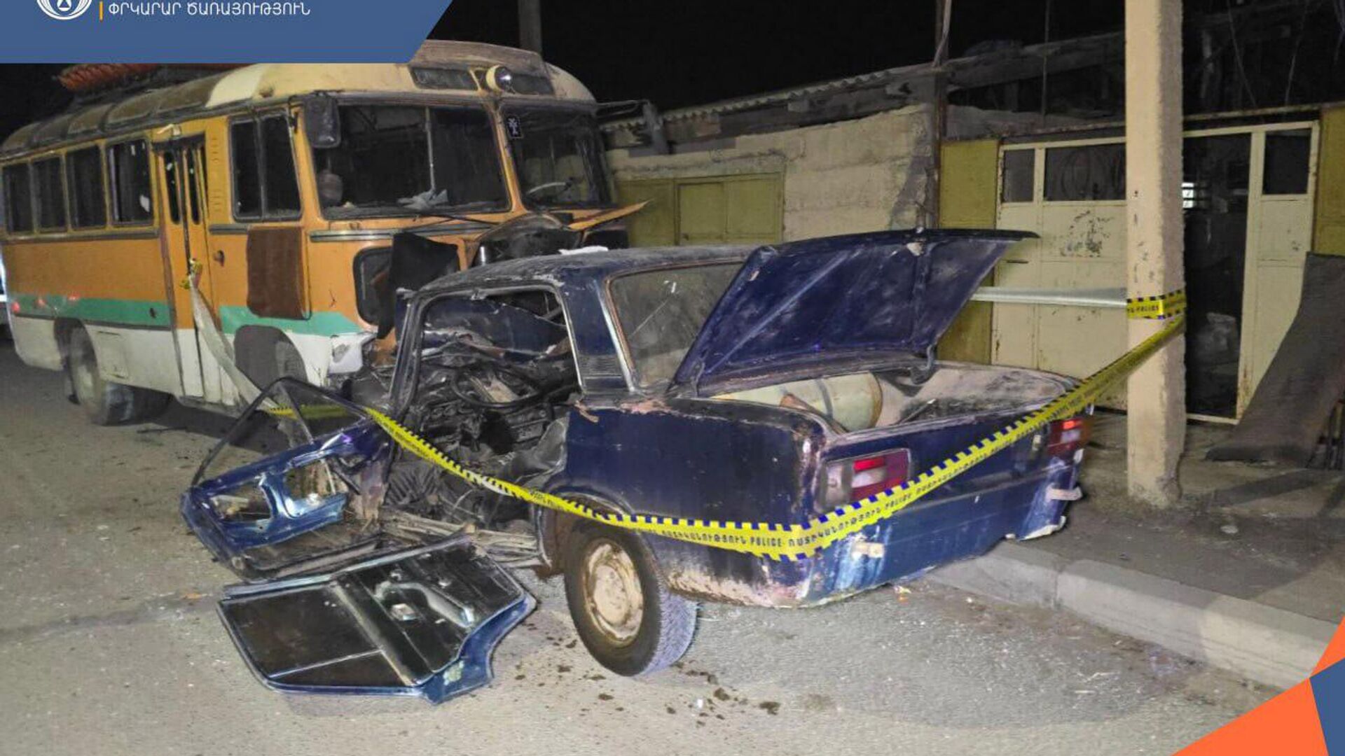 «Պարզվել է, որ Ներքին Դվին գյուղի Արշակունյաց փողոցում «Վազ» մակնիշի ավտոմեքենան բախվել է կայանած «Պազ» մակնիշի ավտոբուսին»,–մանրամասնում են ՀՀ ՆԳՆ–ից: