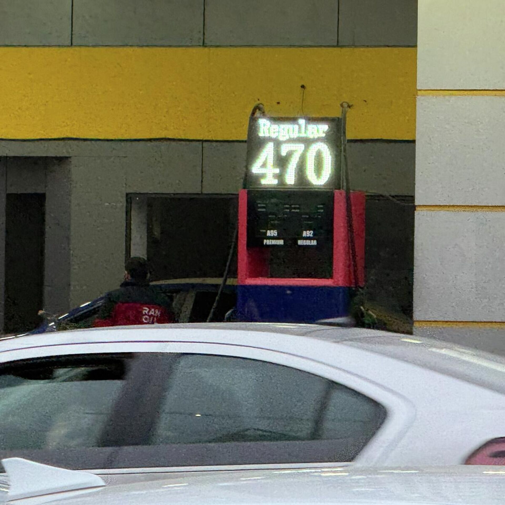 Այս բենզալցակայանում, որտեղ դեռ մի քանի օր առաջ 93 տեսակի բենզինը 570 դրամ էր, իսկ 95 տեսակի բենզինը՝ 600 դրամ, ներկա պահին 93 տեսակի բենզինի (ռեգուլյարի բարձր տեսակը-խմբ․) 1 լիտրն արժե 520 դրամ, 95 տեսակի բենզինը (պրեմիում)՝ 550 դրամ։