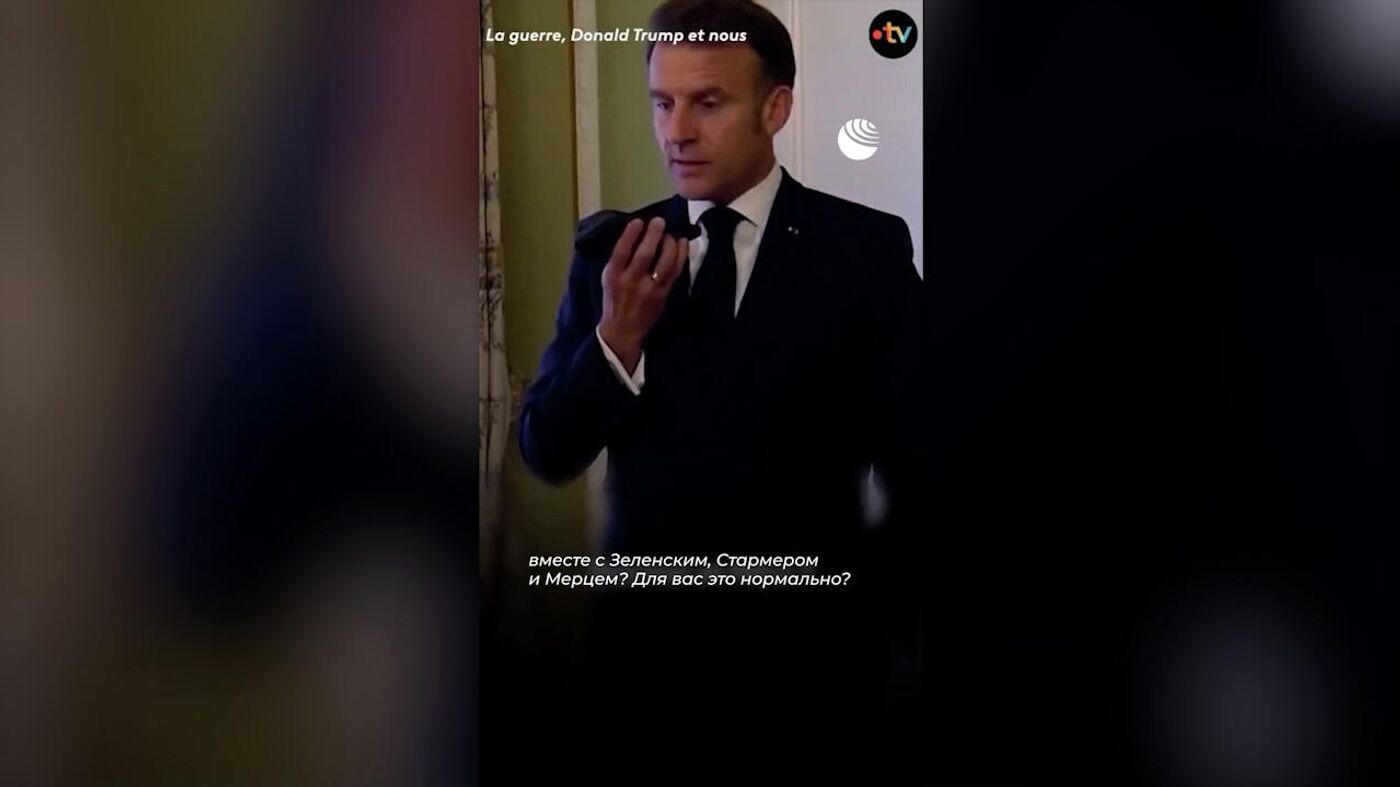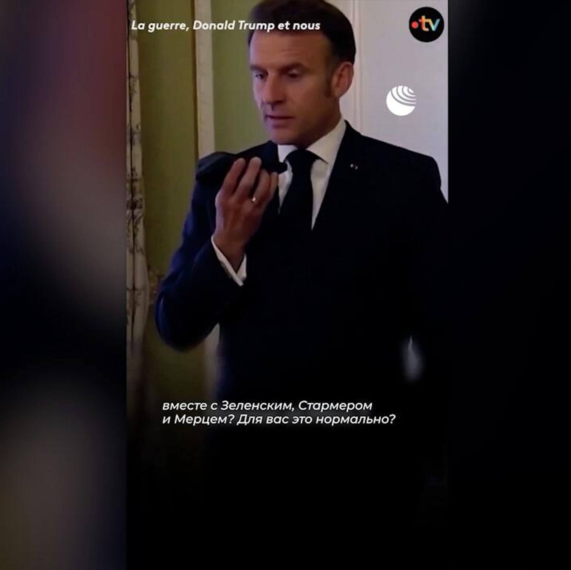 «Ալո, Դոնալդ, մենք Կիևում ենք։ Ես, Զելենսկին, վարչապետ (Մեծ Բրիտանիայի․ խմբ.) Կիր Սթարմերը, նախագահ (Լեհաստանի․ խմբ.) Դոնալդ Տուսկը և կանցլեր (Գերմանիայի․ խմբ.) Ֆրիդրիխ Մերցը։ Մենք միասին ենք և շատ լավ բանակցություններ անցկացրինք առավոտյան: Եվ մենք բոլորս աջակցում ենք 30 օրով անվերապահ հրադադարի Ձեր առաջարկին»,- ասում է Է Մակրոնը տեսագրության հաջորդ հատվածում, երբ արդեն երկրորդ անգամ են զանգել Թրամփին։