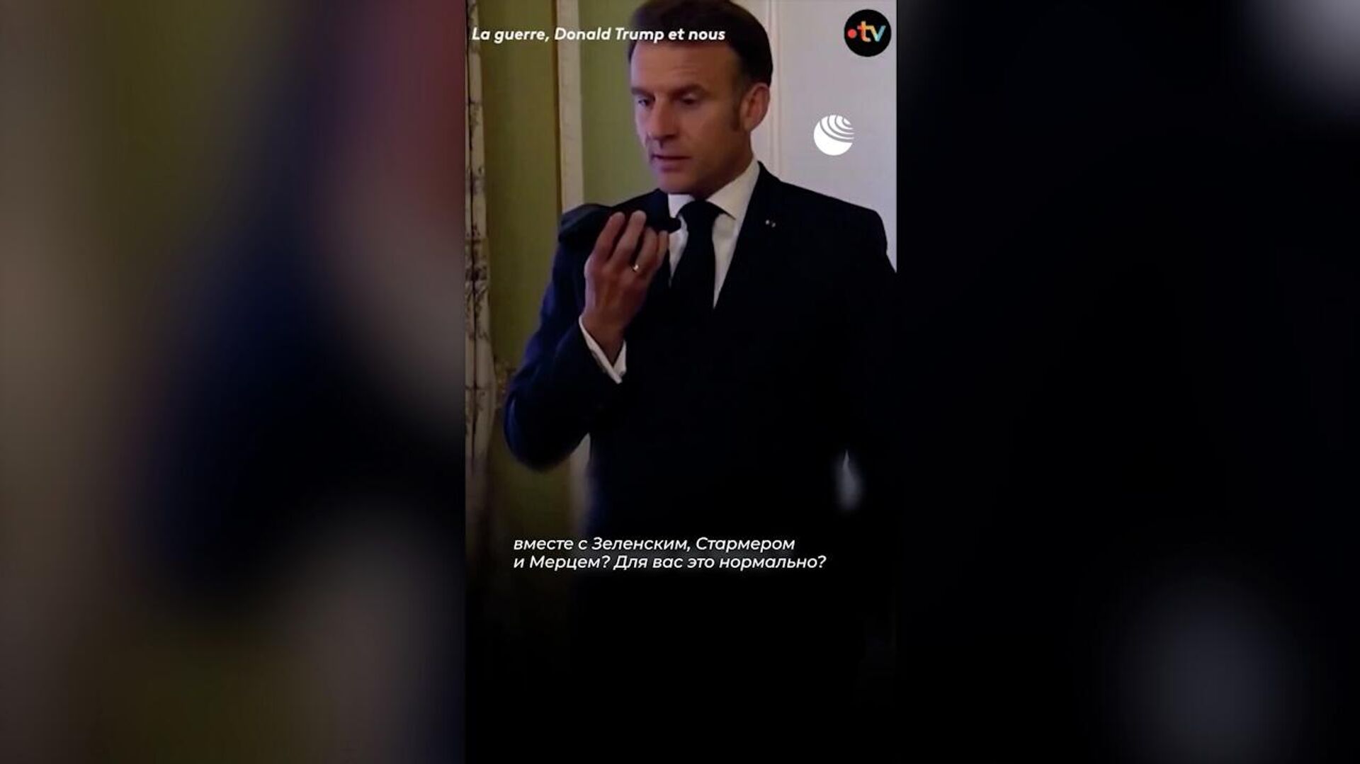 Տեսագրության սկզբում Մակրոնը Կիևից զանգում է Թրամփին և խնդրում մի քանի րոպեից կրկին կապ հաստատել, որ զրույցին միանան նաև Զելենսկին ու եվրոպացի առաջնորդները։ Մակրոնը բացատրում է, որ Զելենսկին համաձայն է 30-օրյա հրադադարի, պատրաստ է այդ մասին հայտարարել հեռախոսով։