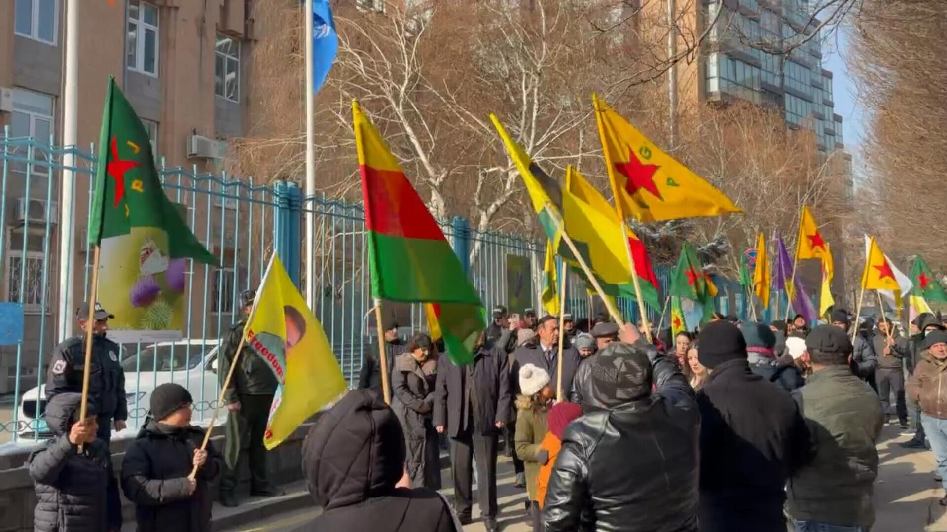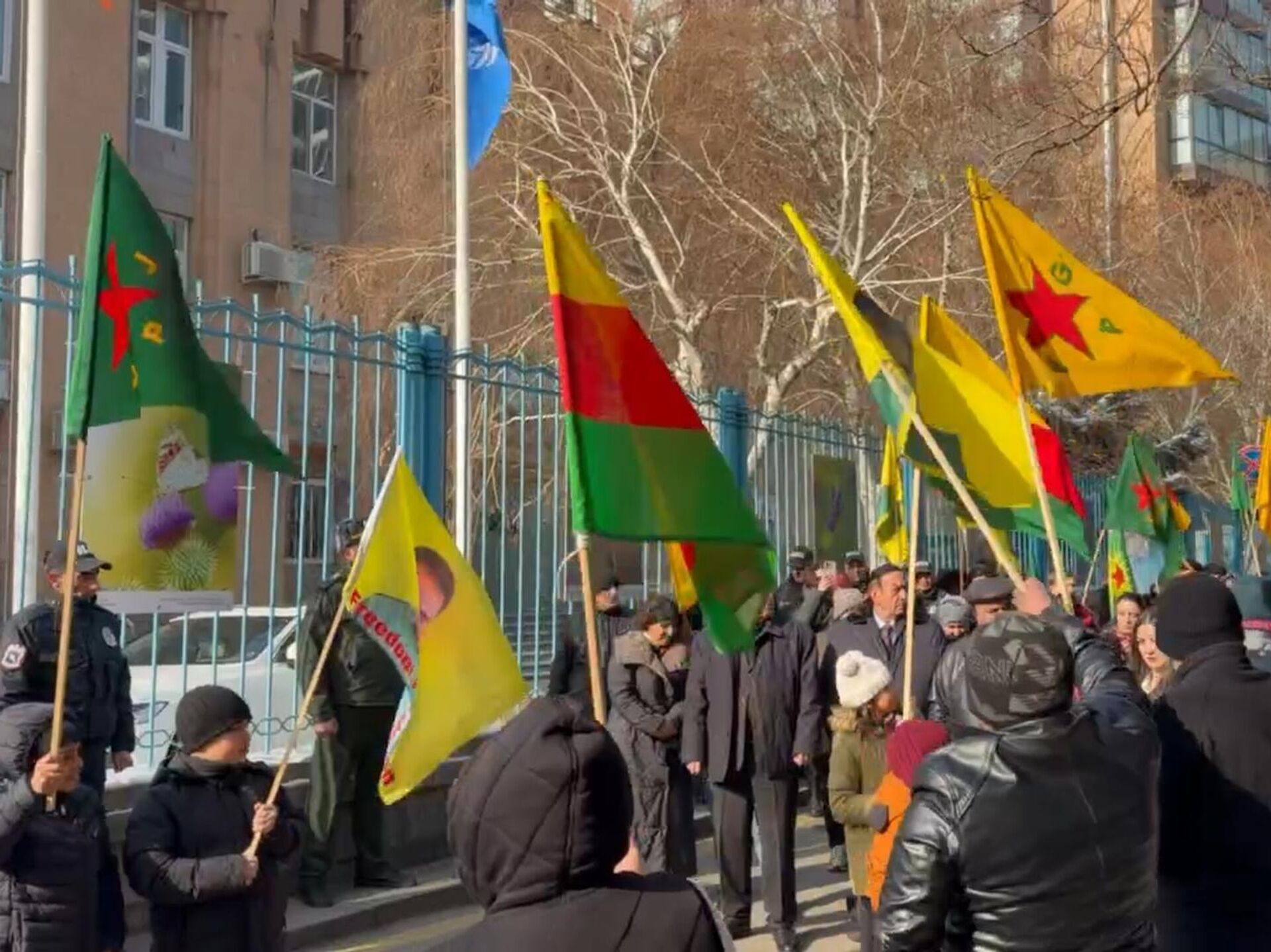 ԵՐԵՎԱՆ, 22 հունվարի – Sputnik․ Հայաստանի քրդական համայնքը Երևանում ՄԱԿ-ի գրասենյակի առջև բողոքի ակցիա է իրականացնում ընդդեմ Թուրքիայի կառավարության կողմից աջակցվող սիրիական իսլամիստների գործողությունների։ Քրդական համայնքի ներկայացուցիչների շարքերում է նաև իշխող «Քաղաքացիական պայմանագիր» խմբակցության անդամ Կնյազ Հասանովը։