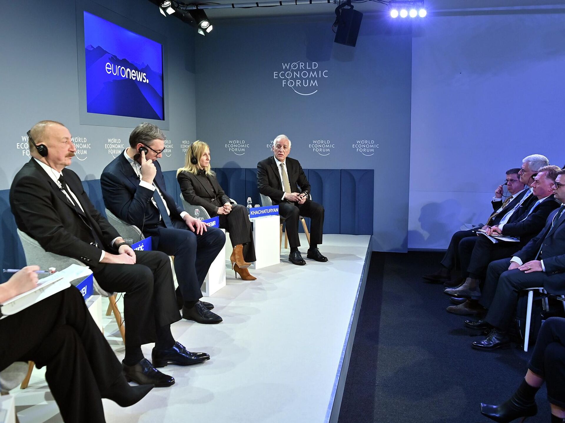 պանելային քննարկման Դավոսի տնտեսական գագաթնաժողովի շրջանակներում։ Այդ ընթացքում նա իր խոսքում մի քանի անգամ շնորհակալություն հայտնեց Ադրբեջանի նախագահին՝ «քաղաքական կամքի» համար։