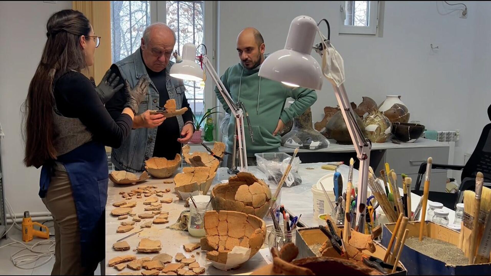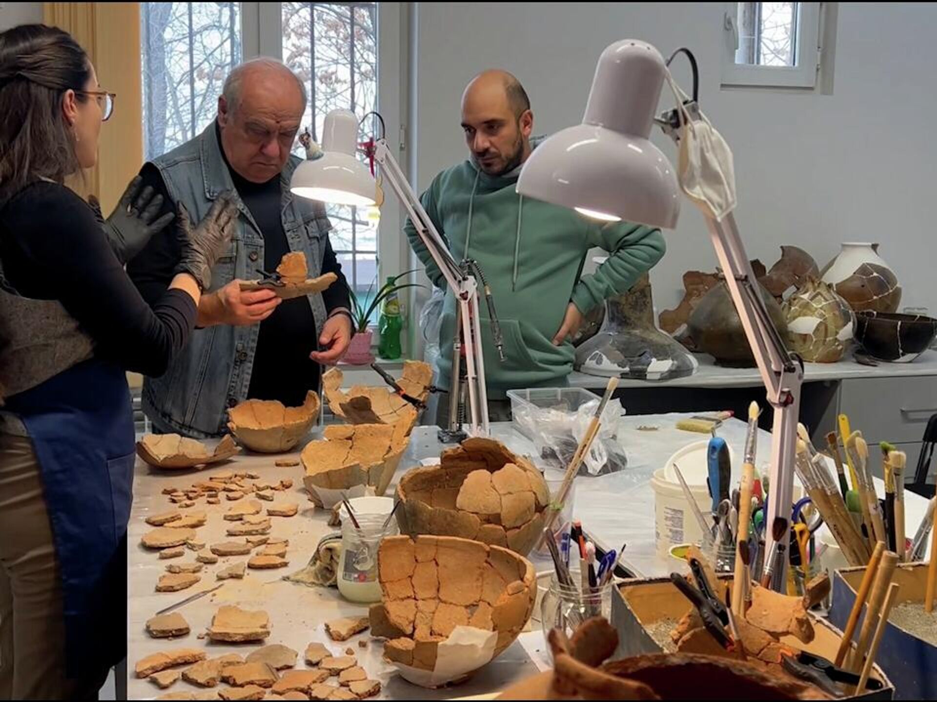 Խոսքը 13 խեցանոթի մասին է, որոնք գնահատվում են շուրջ 4000 տարեկան (նախնական գնահատմամբ՝ վերագրվում են 2-րդ հազարամյակին, այսինքն՝ մ.թ.ա. 20-19-րդ դարերին. խմբ․)։ Վերականգնող մասնագետներին բավականին դժվար աշխատանք է բաժին հասել։ Խեցանոթներից մի քանիսը ոչ լավ որակի են, ուստի հատուկ զգուշությամբ են աշխատում։