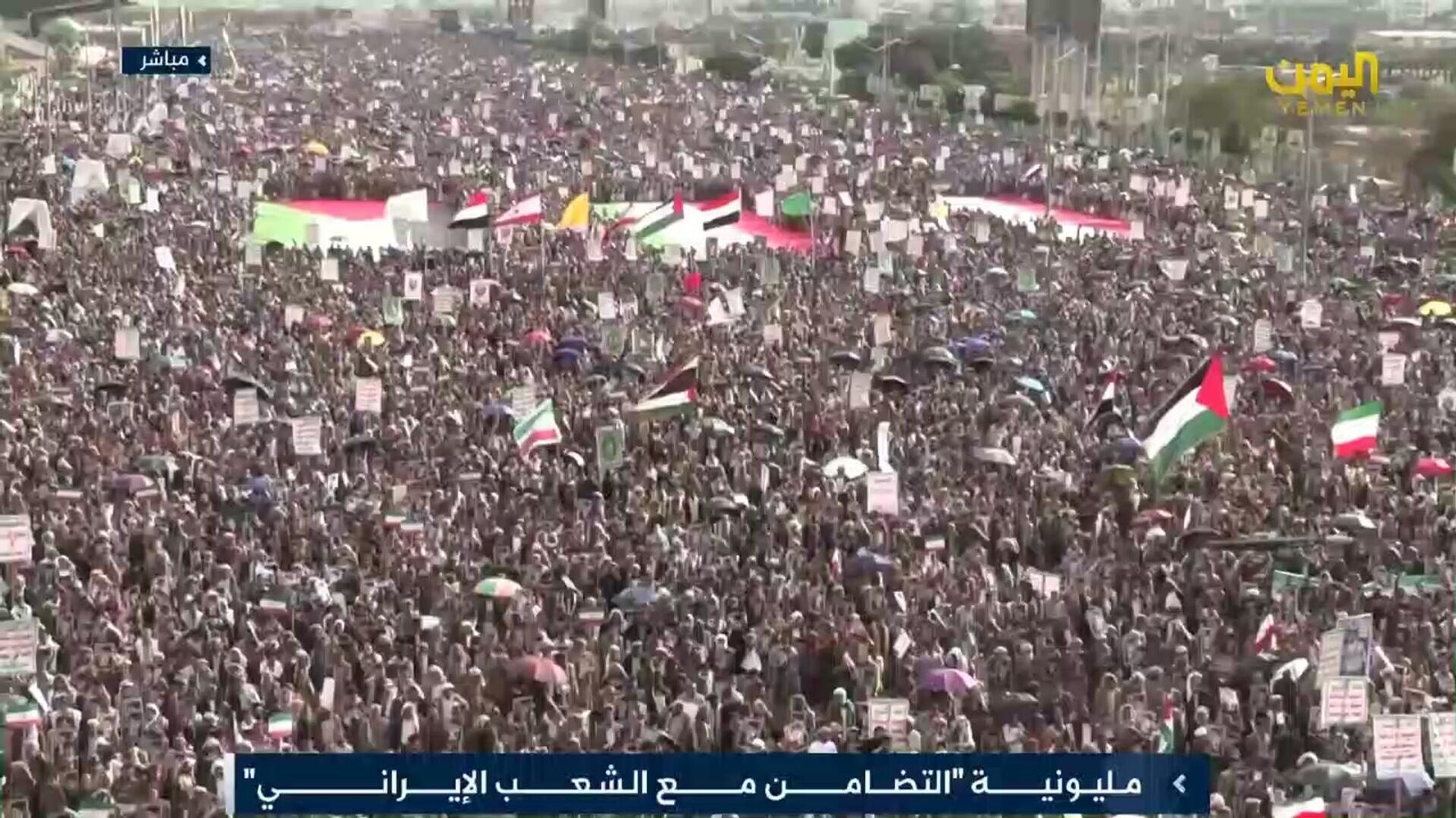 Եմենում ի աջակցությունը Իրանի մասշտաբային ցույց է տեղի ունեցել: Այս մասին հայտնում են տեղի լրատվամիջոցները:Փետրվարի 28-ին ԱՄՆ-ն և Իսրայելը սկսել են հարվածներ հասցնել Իրանի տարածքում գտնվող օբյեկտներին, այդ թվում՝ Թեհրանին, հաղորդվում է ավերածությունների և քաղաքացիական զոհերի մասին: Ավելի ուշ հայտնի է դարձել Խամենեիի և մի շարք բարձրաստիճան զինվորականների, այդ թվում ՝ պաշտպանության նախարար Ազիզ Նասիրզադեի և գլխավոր շտաբի պետ Աբդոլռահիմ Մուսավիի մահվան մասին:Ի պատասխան՝ Իրանը հրթիռային հարվածներ է հասցրել Իսրայելի տարածքին, ինչպես նաև Մերձավոր Արևելքում ԱՄՆ ռազմական օբյեկտներին:Իրանին հարվածները հասցվել են, չնայած այս շաբաթ Ժնևում Օմանի միջնորդությամբ Վաշինգտոնի և Թեհրանի միջև իրանական «միջուկային գործարքի» շուրջ բանակցություններին: