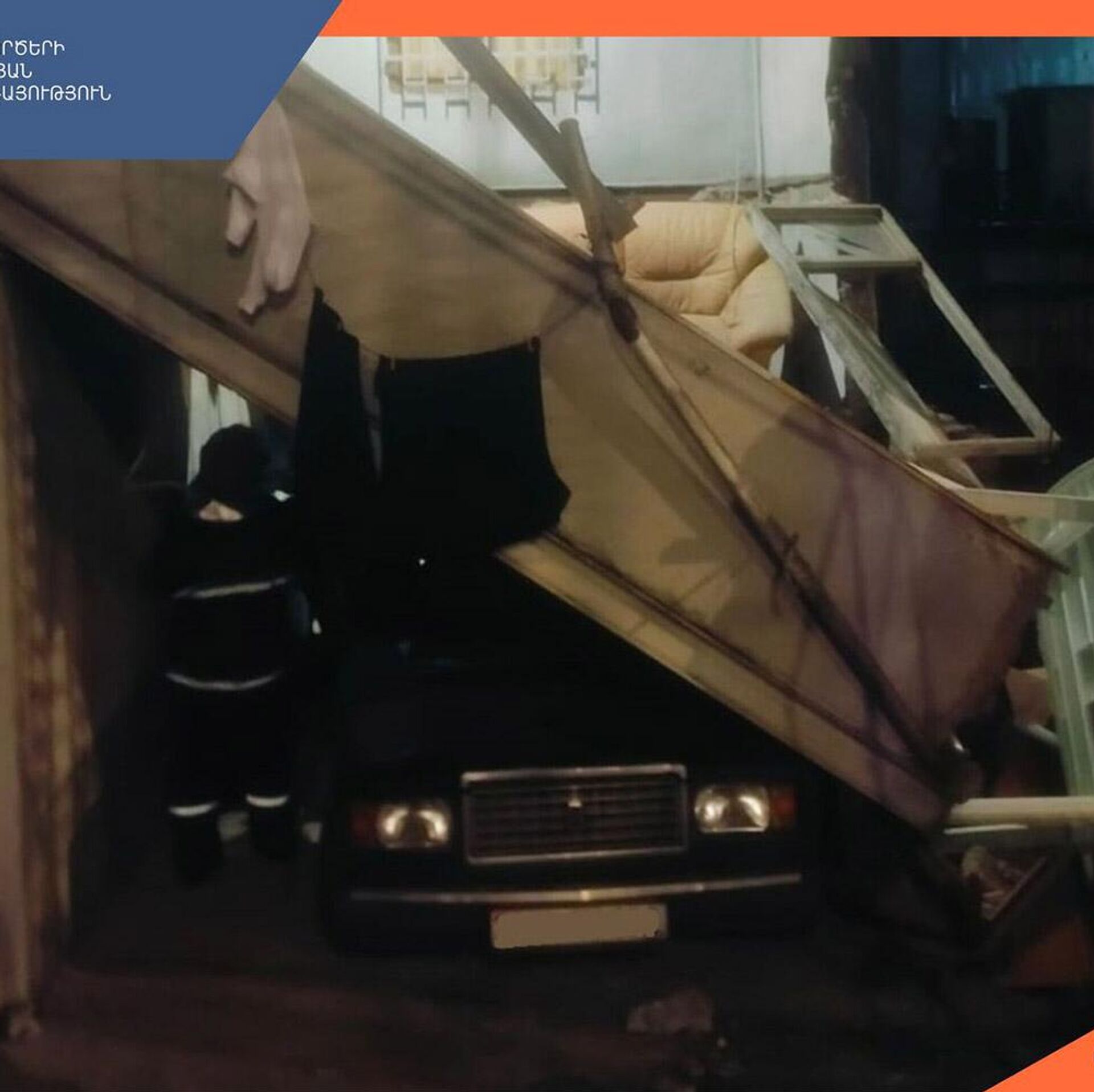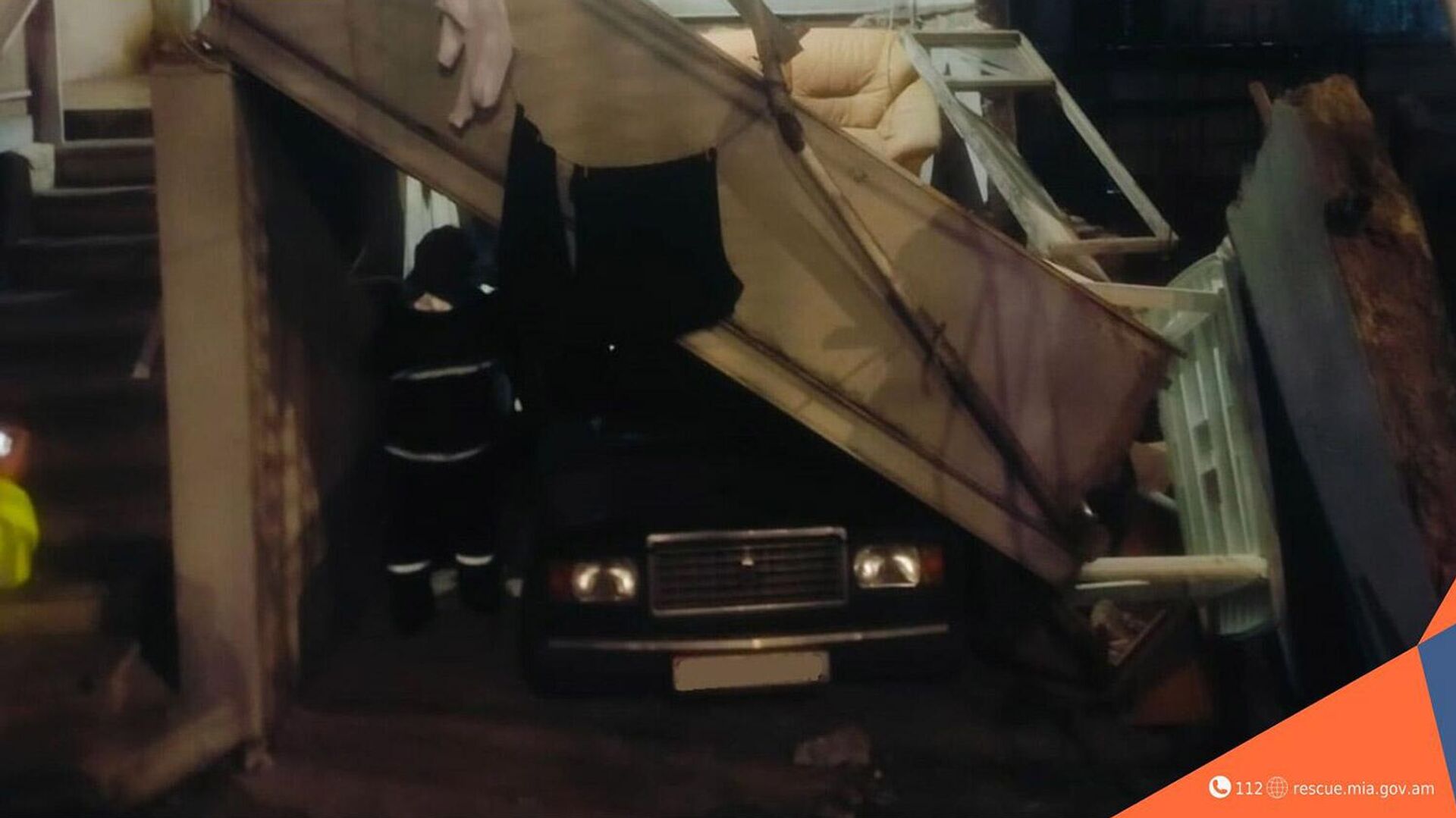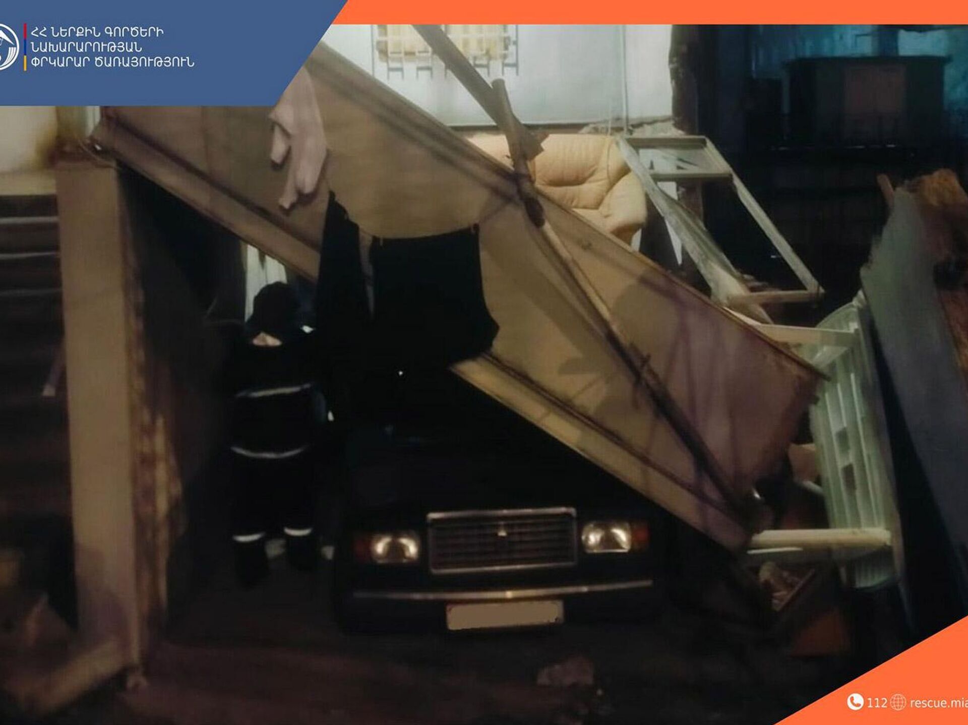 Փլուզման հետևանքով վնասվել է տան բակում կայանած «VAZ» մակնիշի ավտոմեքենան։