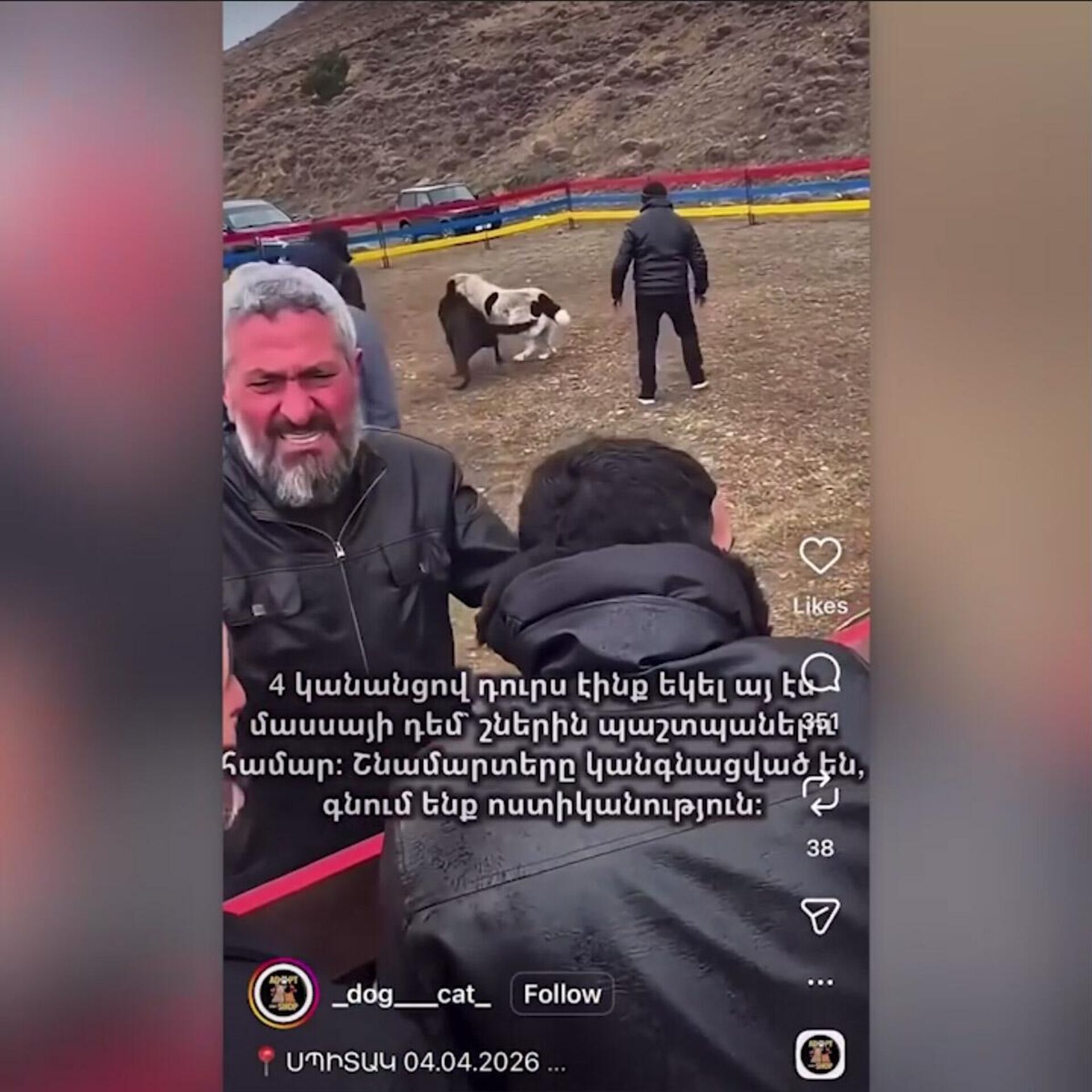 13:58 05.04.2026 (Թարմացված է: 14:19 05.04.2026) Համացանցում աղմկահարույց տեսանյութ է տարածվել, որում երևում է, թե ինչպես են 4 կանայք փորձում խոչընդոտել Սպիտակ քաղաքում անցկացվող շնամարտերը։