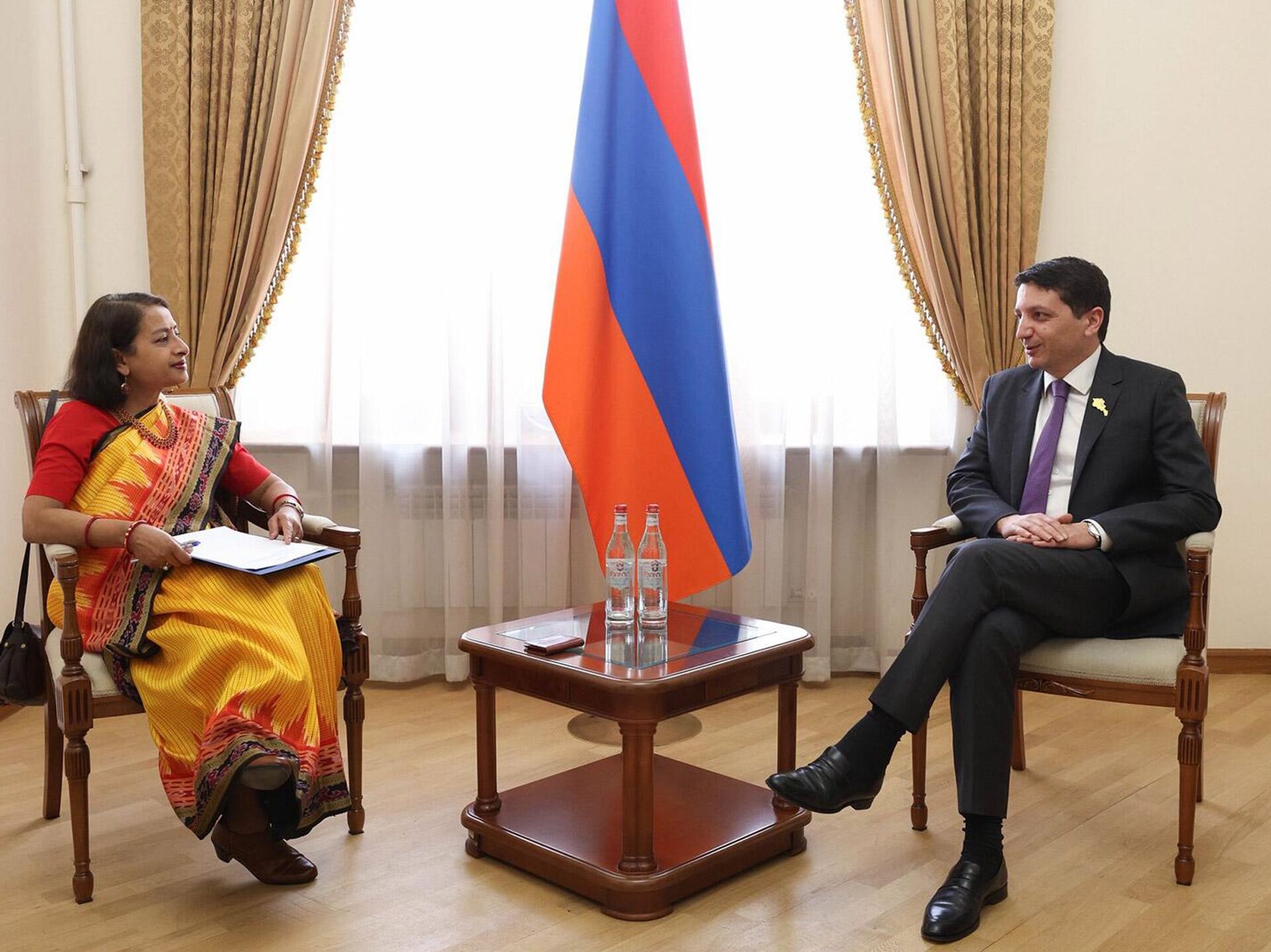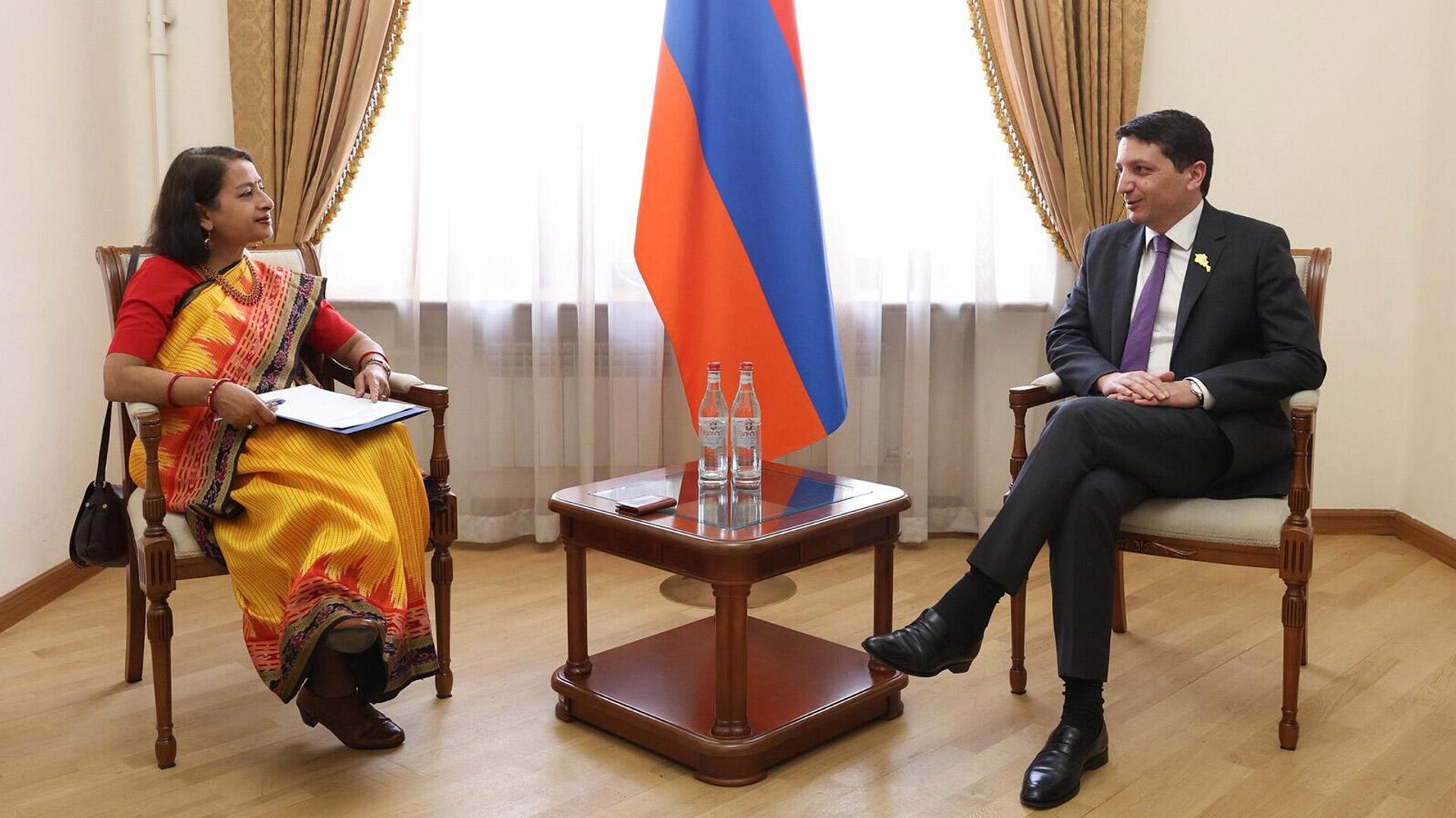 ԵՐԵՎԱՆ, 7 ապրիլի – Sputnik. Հայաստանն ու Հնդկաստանը կհամագործակցեն հանրային ֆինանսների կառավարման ոլորտում։ Ինչպես հայտնում են ՀՀ ֆինանսների նախարարության մամուլի ծառայությունից, նախարար Վահե Հովհաննիսյանն այս մասին խոսել է ՀՀ-ում Հնդկաստանի արտակարգ և լիազոր դեսպան տիկին Նիլակշի Սահա Սինհայի հետ հանդիպման ժամանակ:Ըստ հաղորդագրության` երկու երկրների ֆինանսների նախարարությունների միջև նախատեսվում է կնքել հուշագիր, որը նպատակաուղղված է պետական ֆինանսական համակարգերի արդյունավետության բարձրացմանը։Նախարար Վահե Հովհաննիսյանը և դեսպան Նիլակշի Սահա Սինհան քննարկել են երկկողմ տնտեսական համագործակցության ընդլայնման հեռանկարները՝ հաշվի առնելով առևտրաշրջանառության ծավալների աճի դրական դինամիկան:Հանդիպման ընթացքում վերահաստատվել է երկու երկրների միջև բարեկամական ու փոխշահավետ կապերի ամրապնդման կարևորությունը, որը ՀՀ կառավարության ծրագրով ամրագրված առաջնահերթություններից է։Երևանն ու Դելին խորացնում են քաղաքական փոխգործակցությունը. դեսպան
