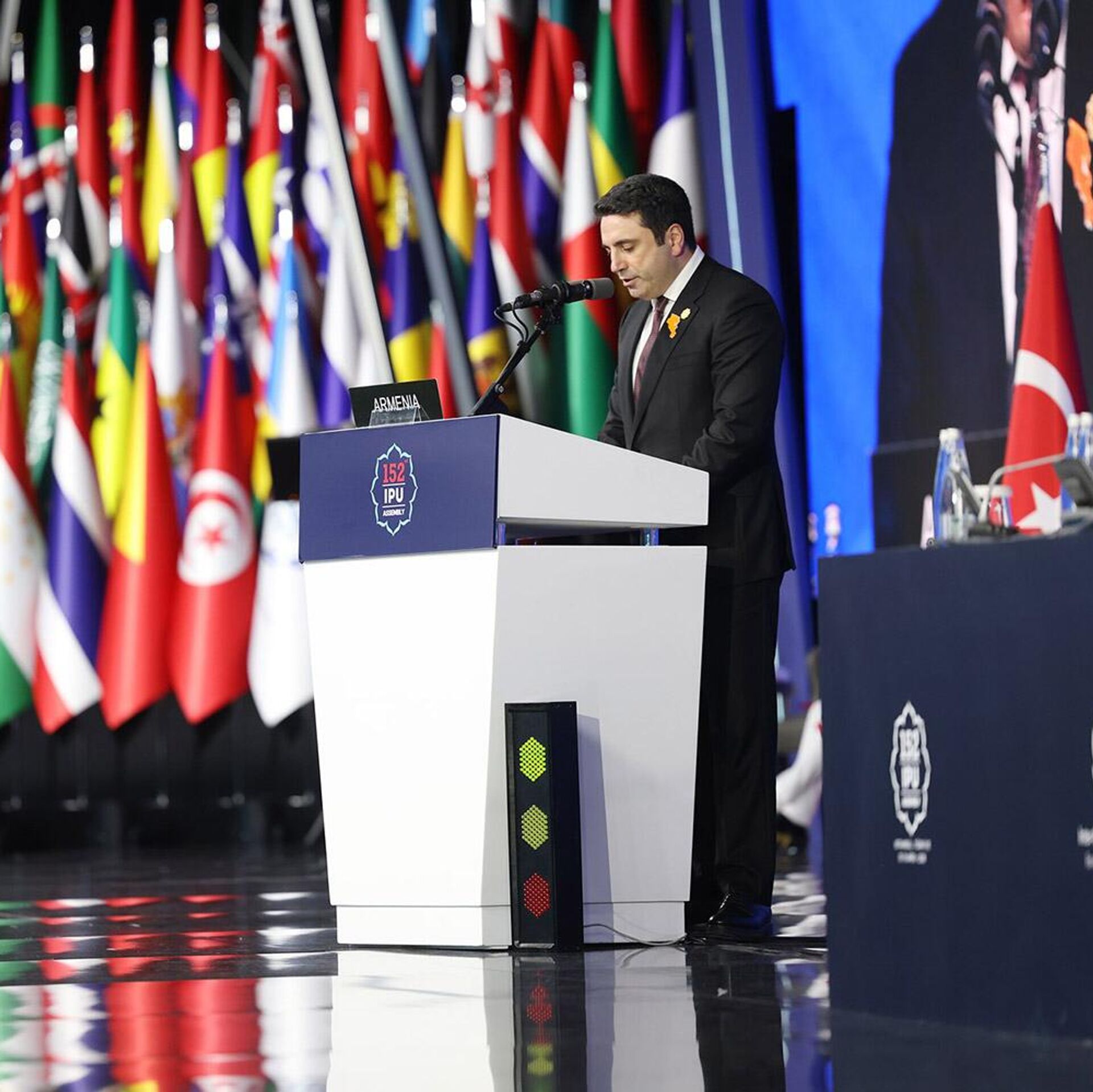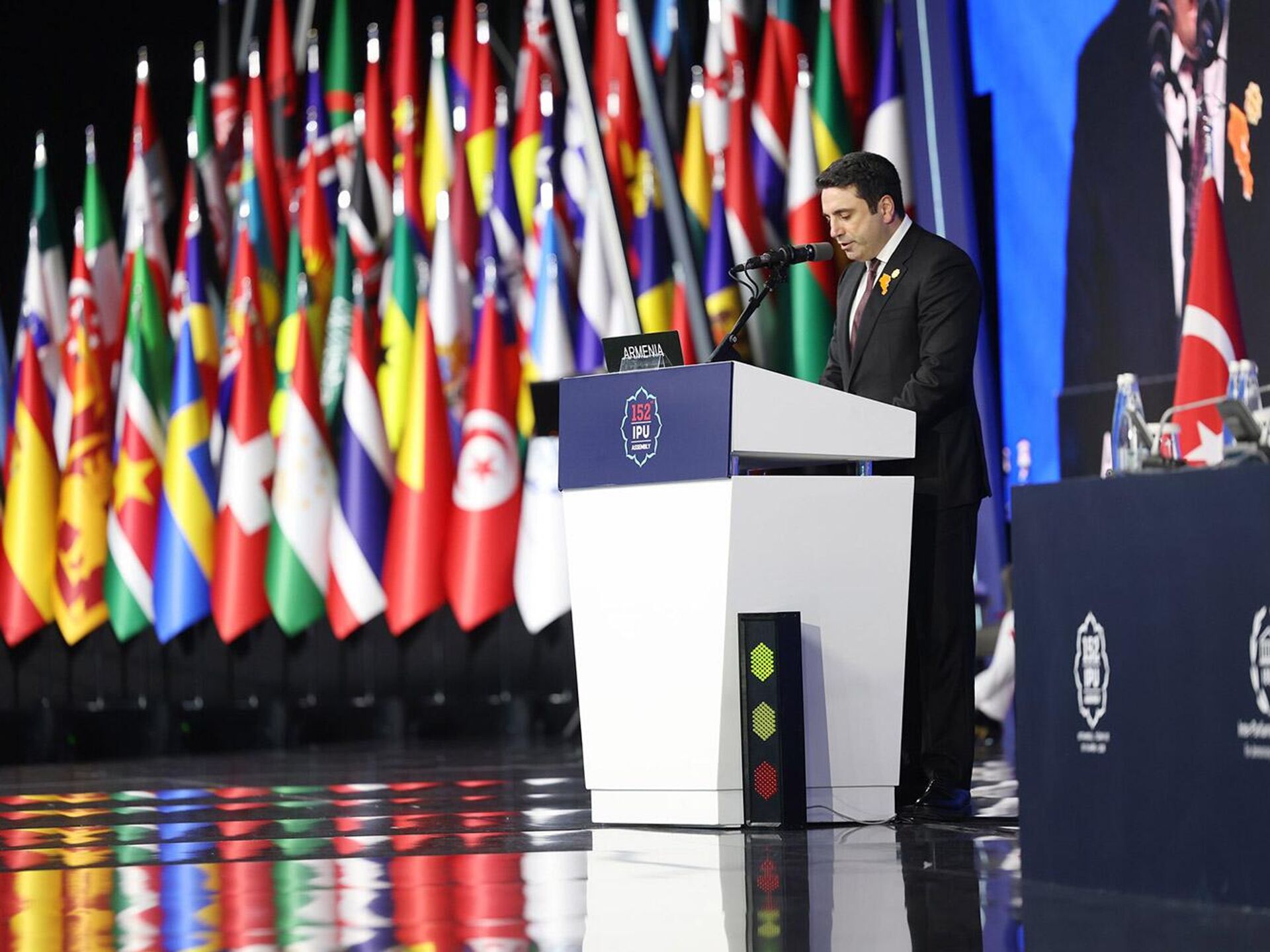 ԱԺ նախագահը, ելույթ ունենալով Միջխորհրդարանական միության 152-րդ համաժողովում, հայտարարել է, որ Հայաստանը պատրաստ է ամրապնդել խաղաղությունը, առաջ մղել երկխոսությունը և իրական հնարավորությունների վերածել այն: