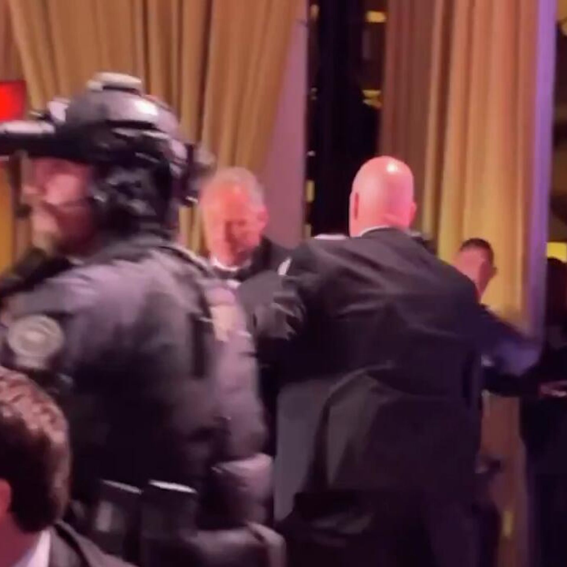 Մինչ մյուս մասնակիցները, որոնք նստած էին նախագահությունում, հրահանգ են ստացել դեպի ներքև թեքվել և սկսել են մտնել սեղանի տակ, գործակալներն օգնել են ԱՄՆ նախագահին կանգնել, ապա նրան դուրս են բերել դահլիճից։