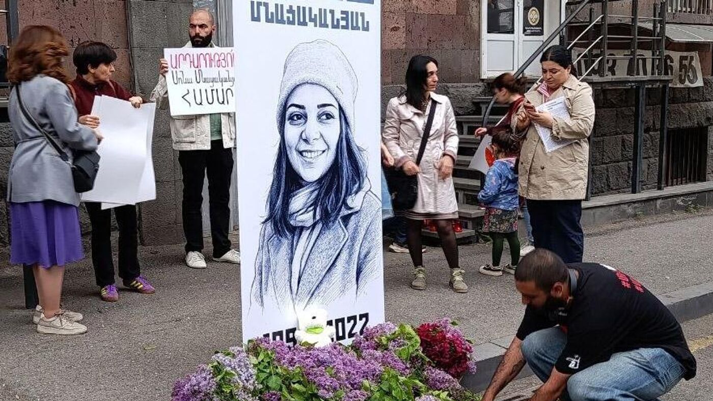 Граждане в центре Еревана приносят цветы к месту гибели беременной Соны Мнацаканян